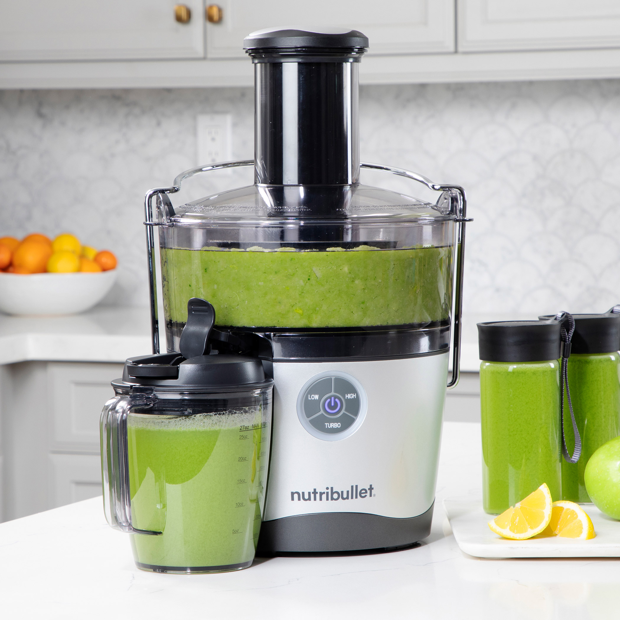 The Nutribullet Juicer Pro is designed for ultimate efficiency, and engineered to produce smooth, flavorful, and delicious juice. With the high-torque motor and the power of turbo speed, this centrifugal juicer can handle the toughest fruits and veggies with ease - no hesitation or wobbling here! Storage accessories are included to create the ultimate juicing system. This countertop machine lets you get juiced, get energized, and get on with your day. Product Features: