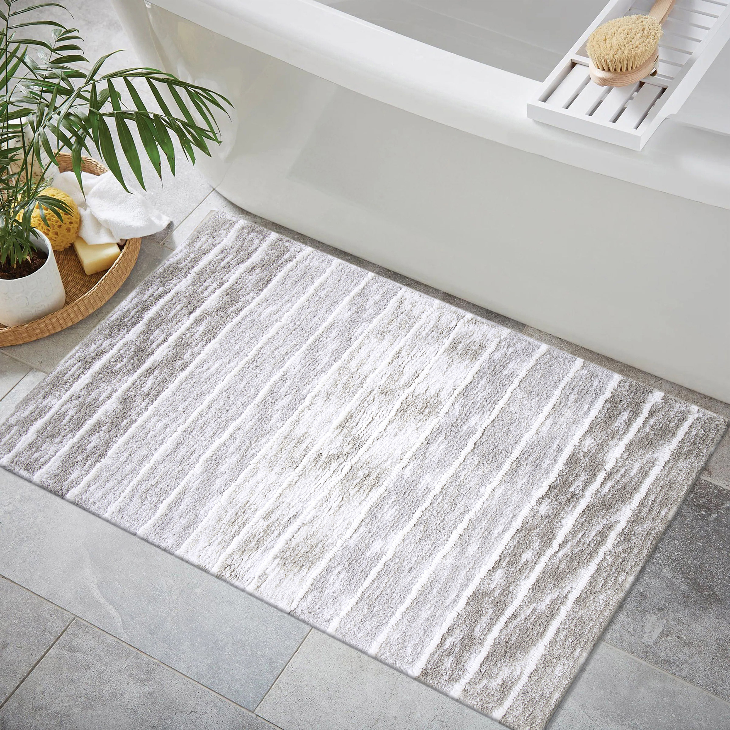 The Mineral Spring Ombre Space Dye cotton 24” x 36” bath rug features an ombre design. Made with long staple cotton fibers to provide a soft handfeel. This bath rug is machine washable and Oeko-Tex certified. The Mineral Spring Ombre Space Dye cotton bath rug is available in four colors.