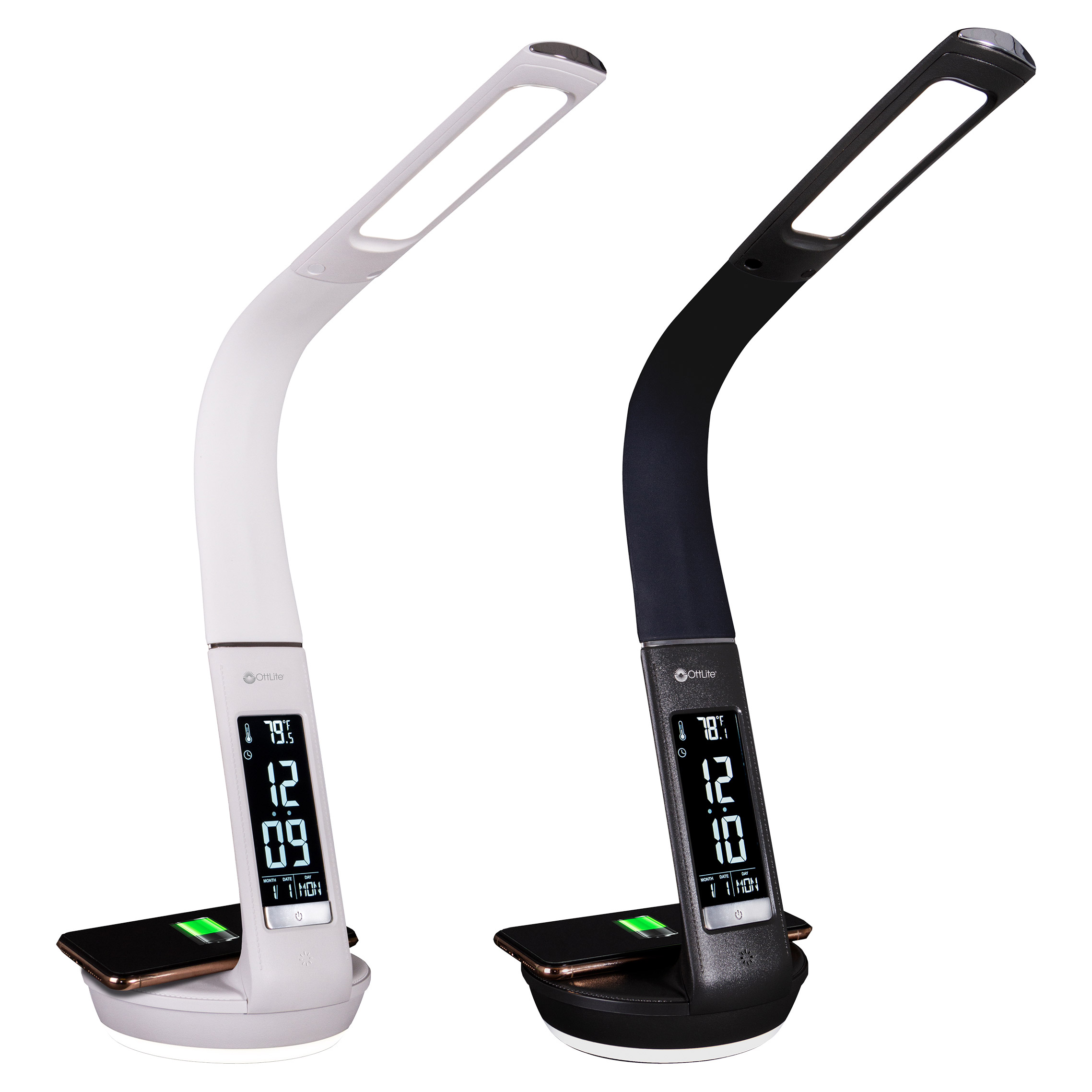 OttLite LED Desk Lamp with Clock and Wireless Charging Station