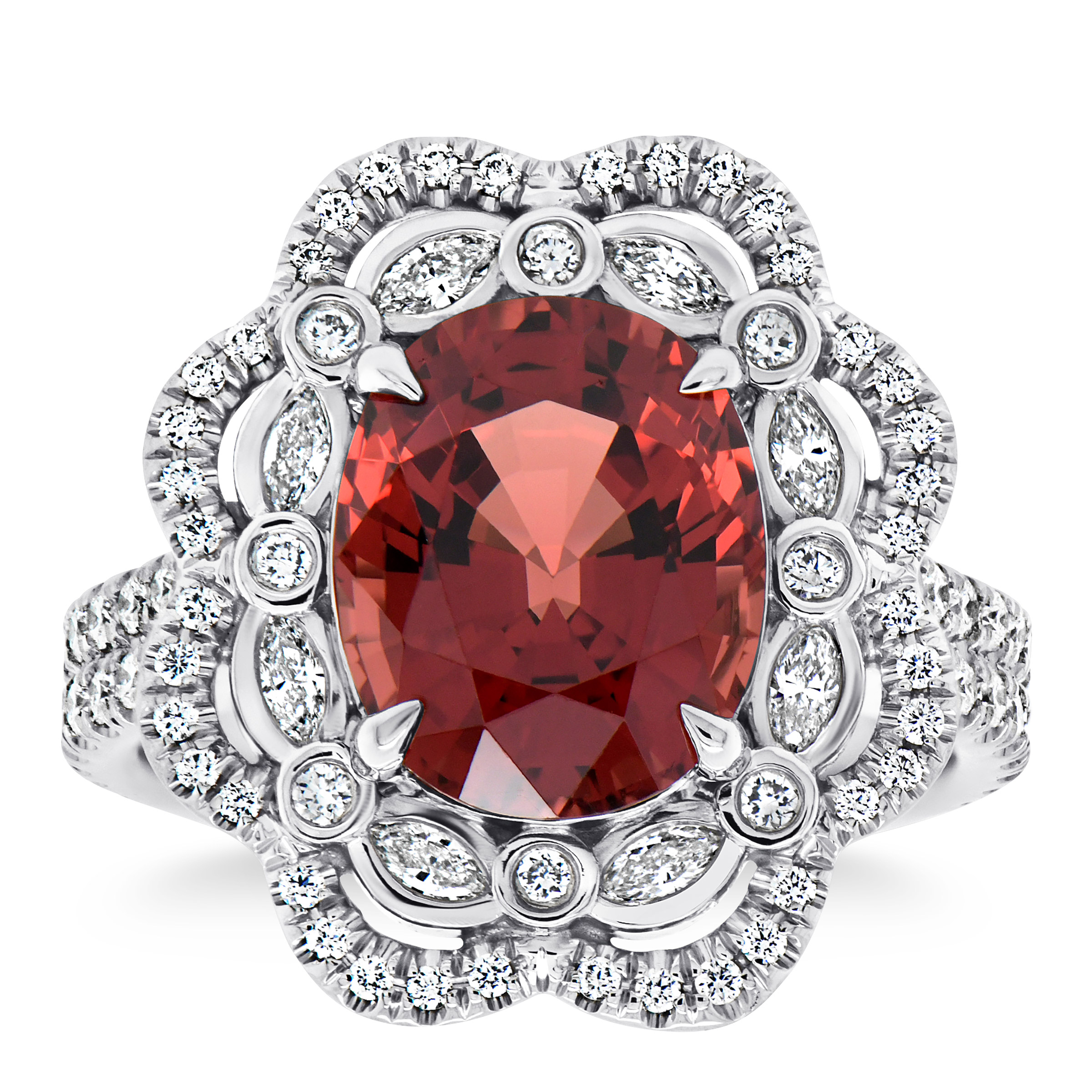 Oval Cut 4.37 ct Reddish Brown Spinel & Diamond Platinum Ring
