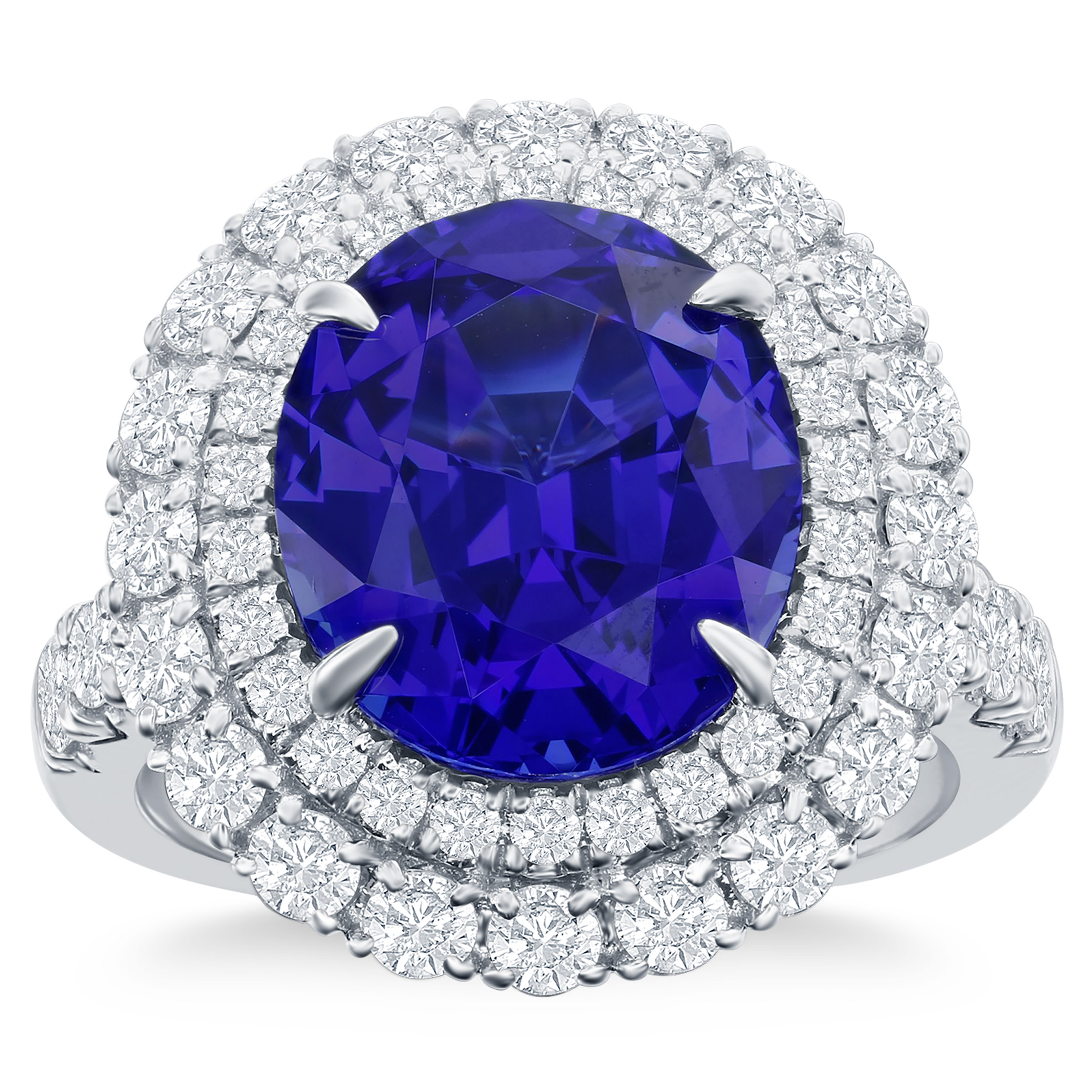 Oval Cut 6.28 ct Tanzanite & Diamond 18kt White Gold Halo Ring