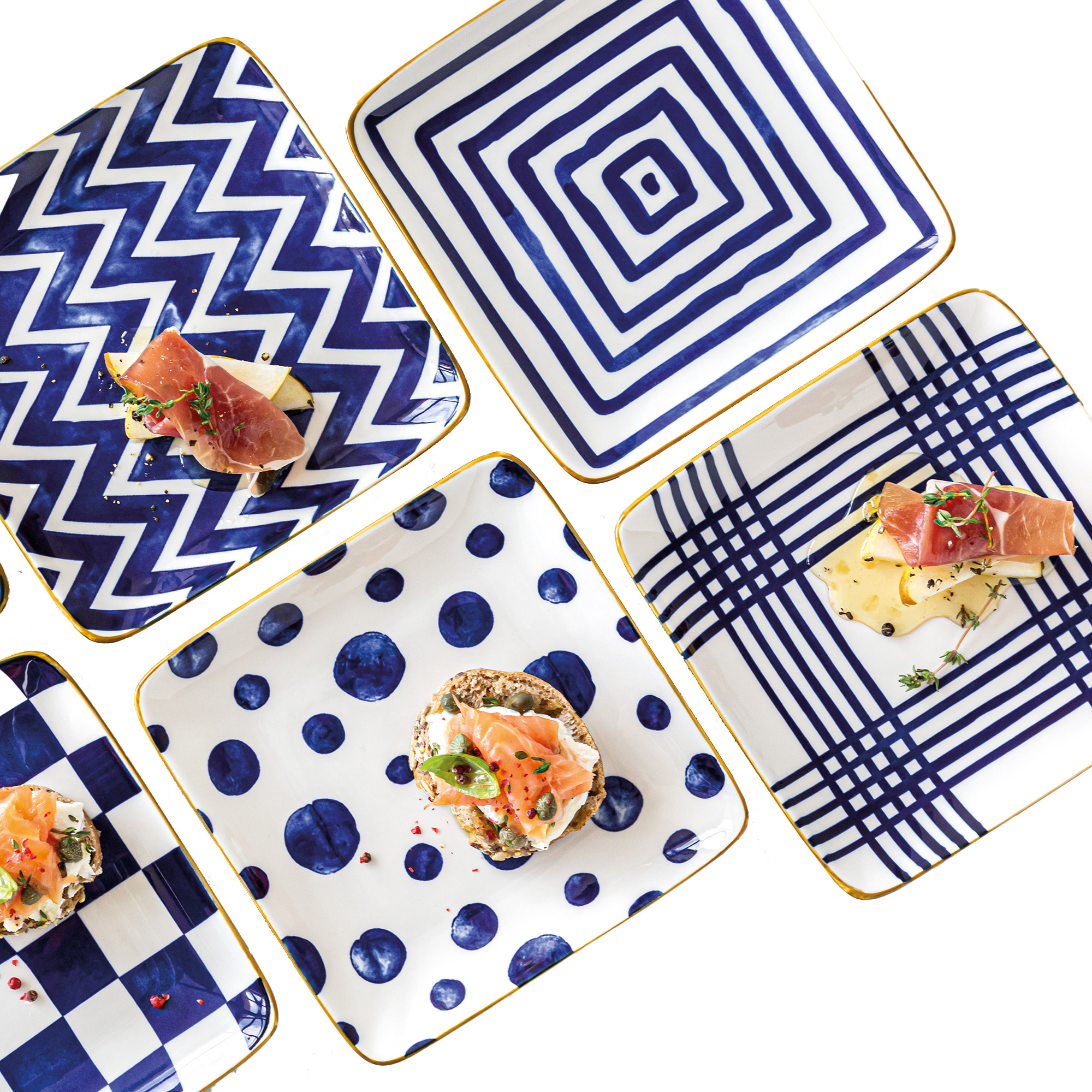 Whether serving empanadas, cheese or pigs in a blanket, these plates by overandback come handy for appetizers, desserts or light meals. The appetizer plates feature six stylish designs, hand painted with contrasting rims also fully hand-painted. Made of vitrified stoneware, these plates promise longevity. Easy to stack and store away, these squares are multifunctional and versatile for all occasions. They are dishwasher and microwave safe.