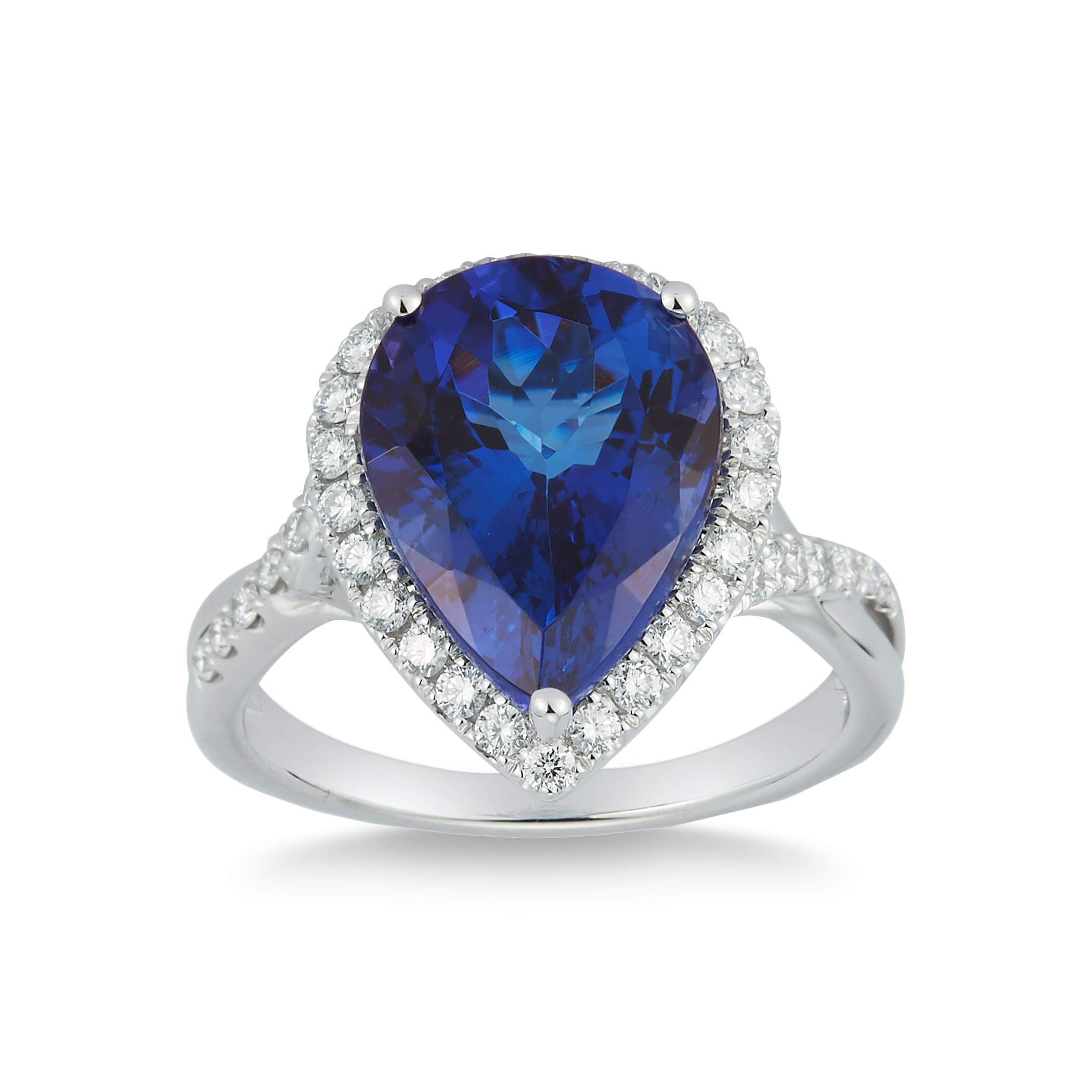 Pear Shape Tanzanite & Diamond 18kt White Gold Ring