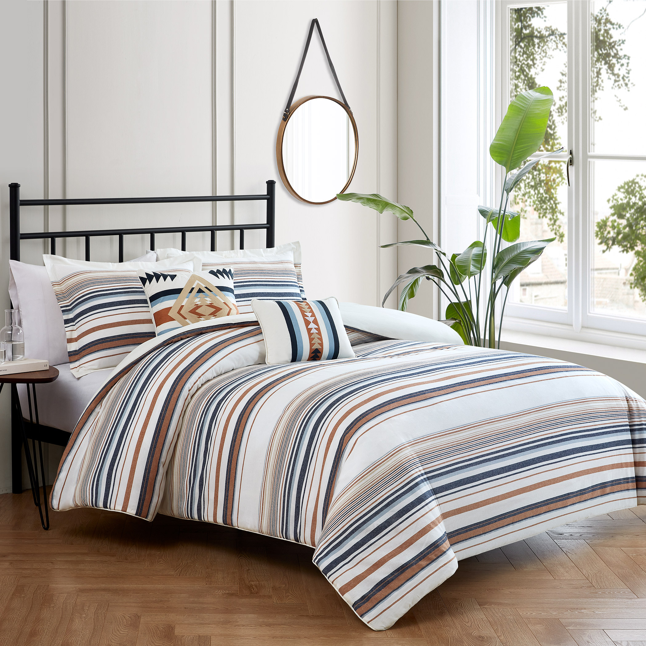 Our Pendleton Comforter sets will add style, warmth, and color to any décor. The clean and casual stripes of the Savanna Stripe by Pendleton will add chicness to any bedroom. Included in the set is 1 comforter, 2 matching pillow shams, and 2 decorative embroidered pillows.