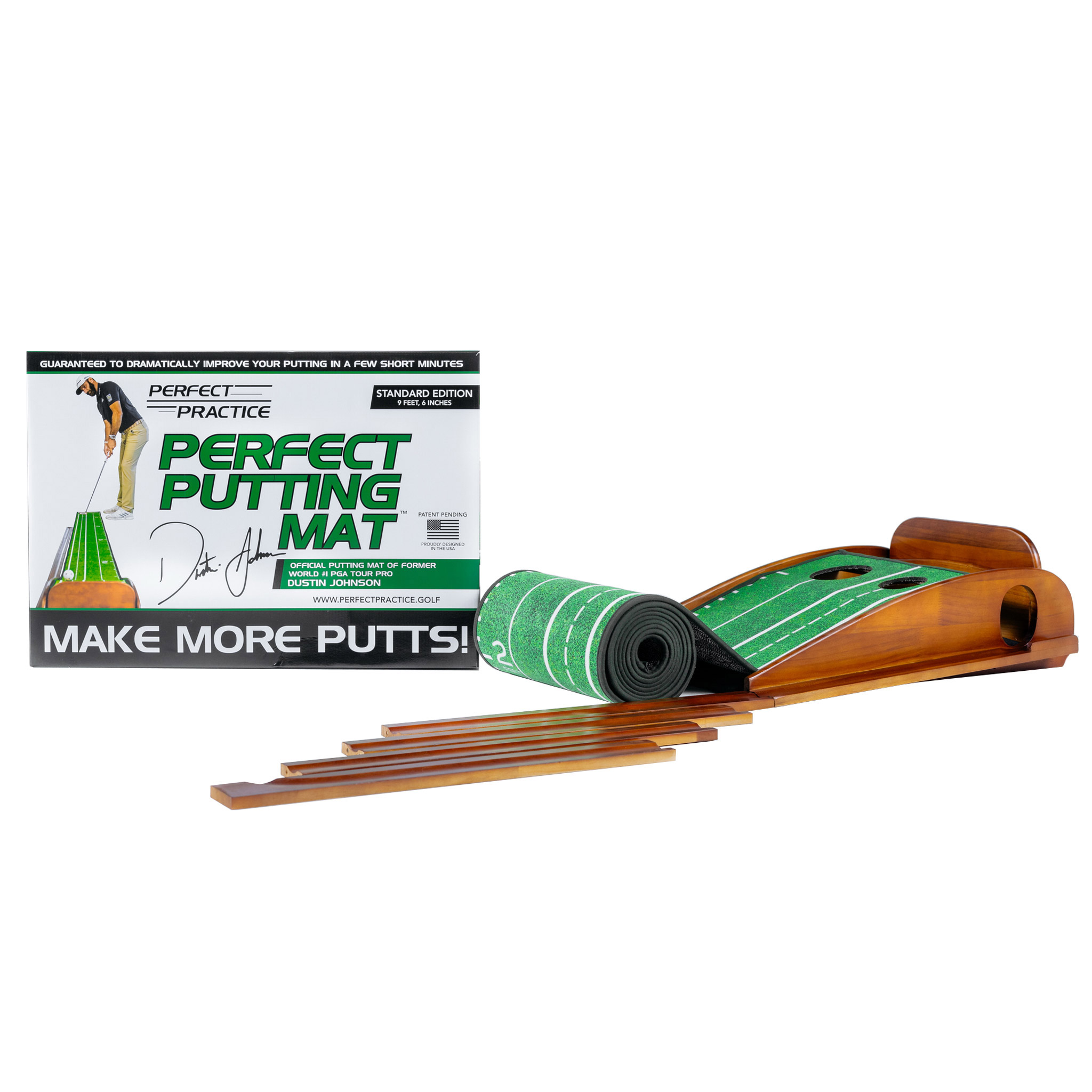 • Perfect Putting Mat - Standard Edition 9 foot 6 inch putting mat with 4 piece magnetic ball return.