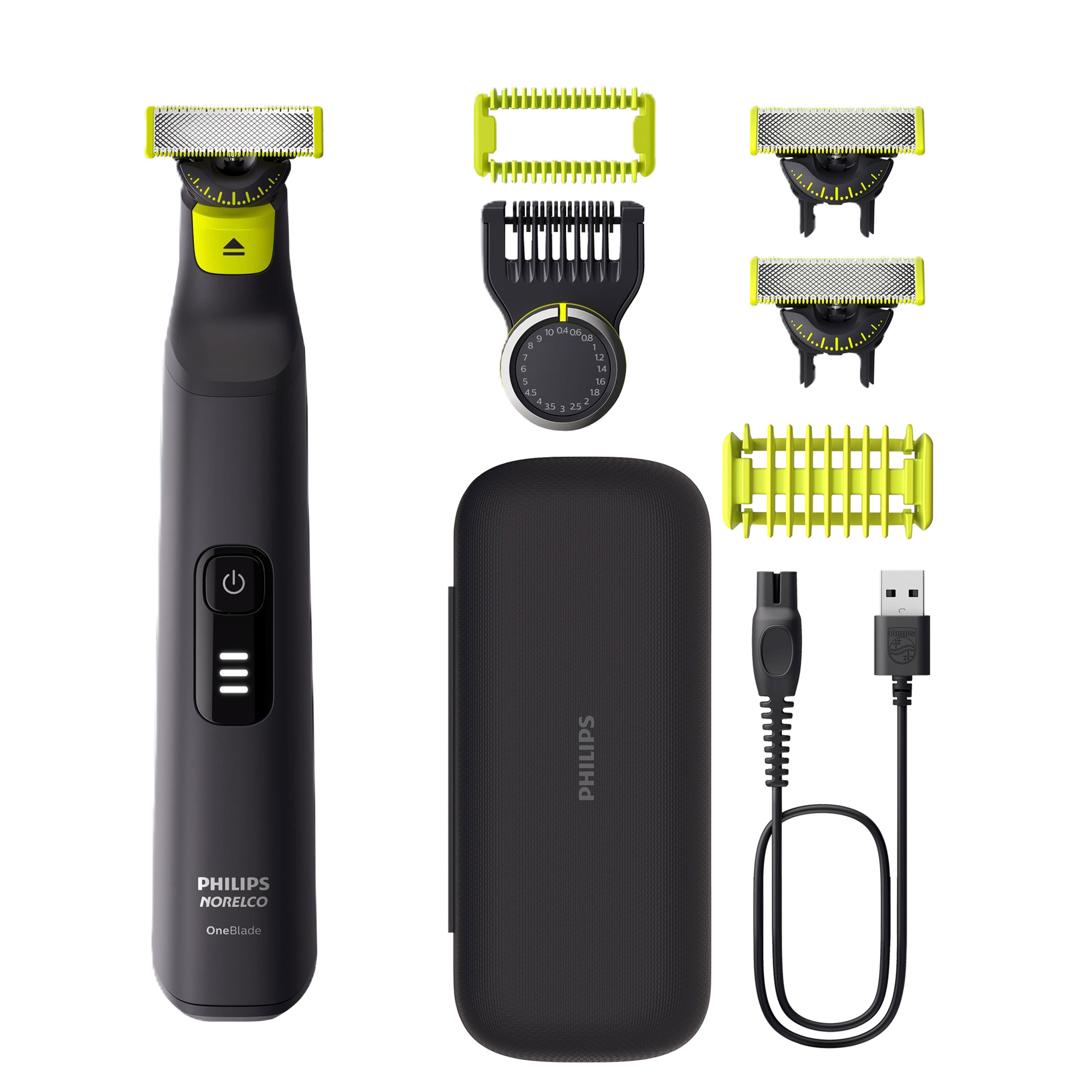 - Includes 3 Blades, 1 Skin Guard, 1 Body Comb, 20 Length Comb and Travel Case