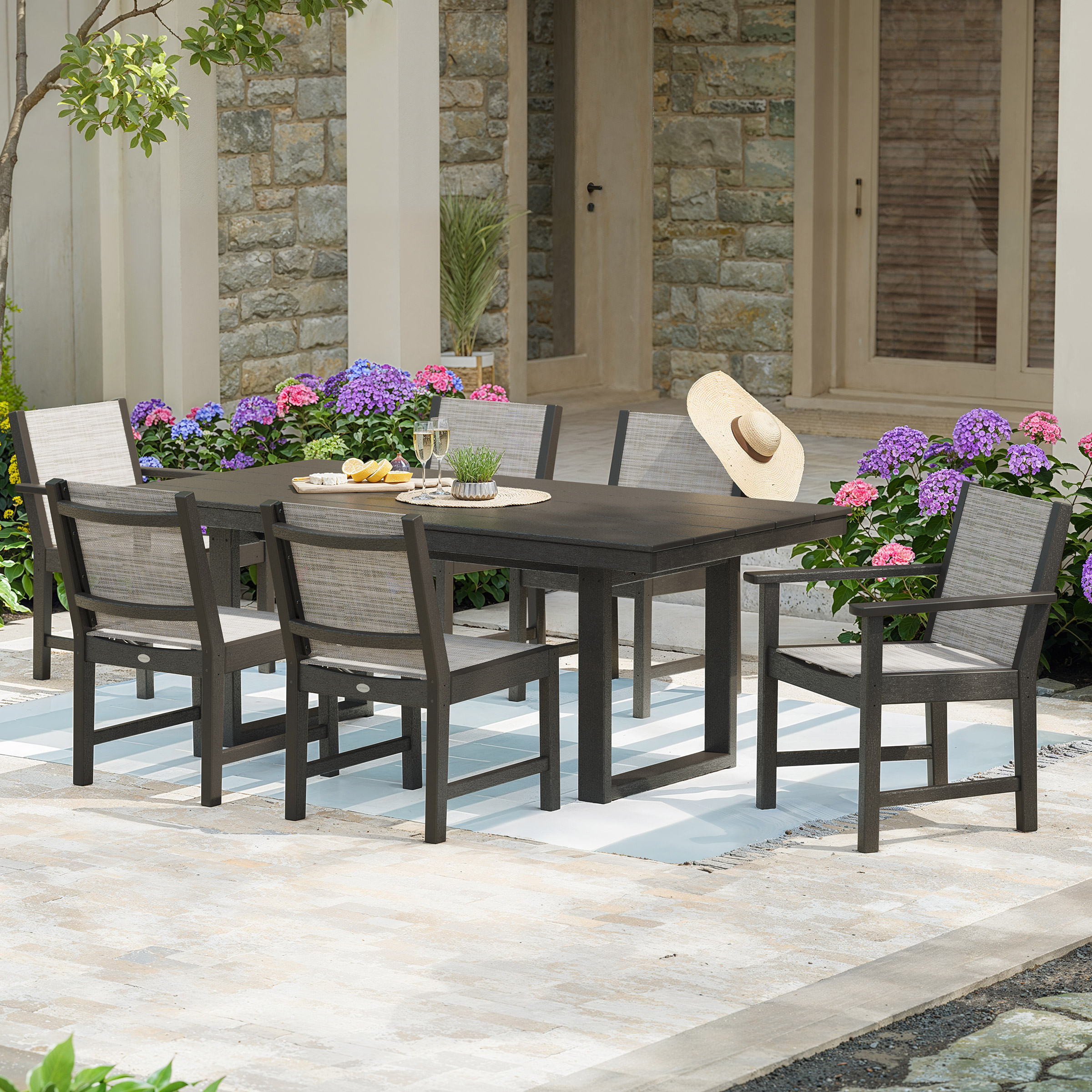 - Includes 2 Sling Dining Arm Chairs, 4 Sling Dining Side Chairs, and 1 Dining Table