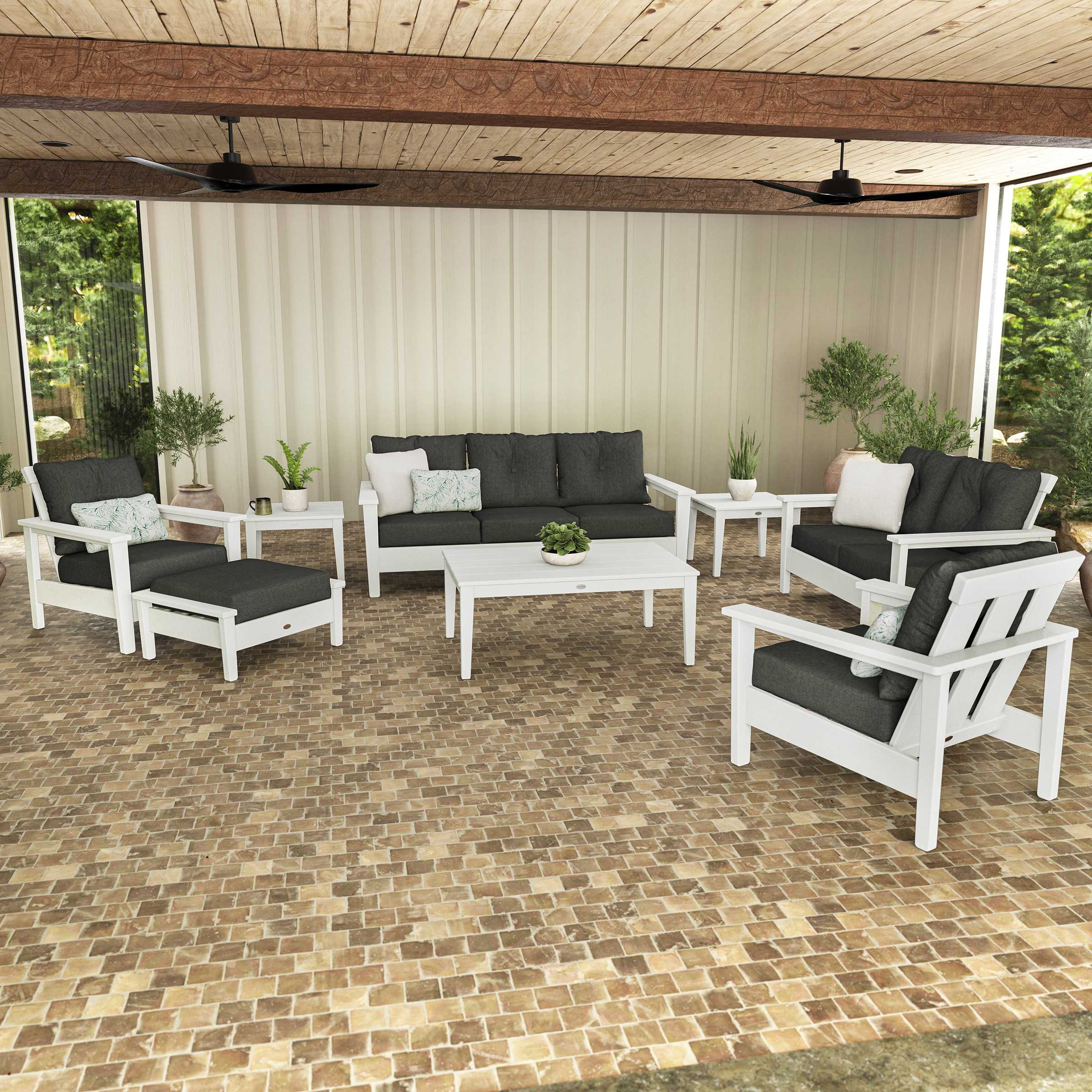 - Includes One Ottoman, Two Chairs, One Loveseat, One Sofa, Two End Tables, One Coffee Table, Two Throw Pillows, Three Lumbar Pillows