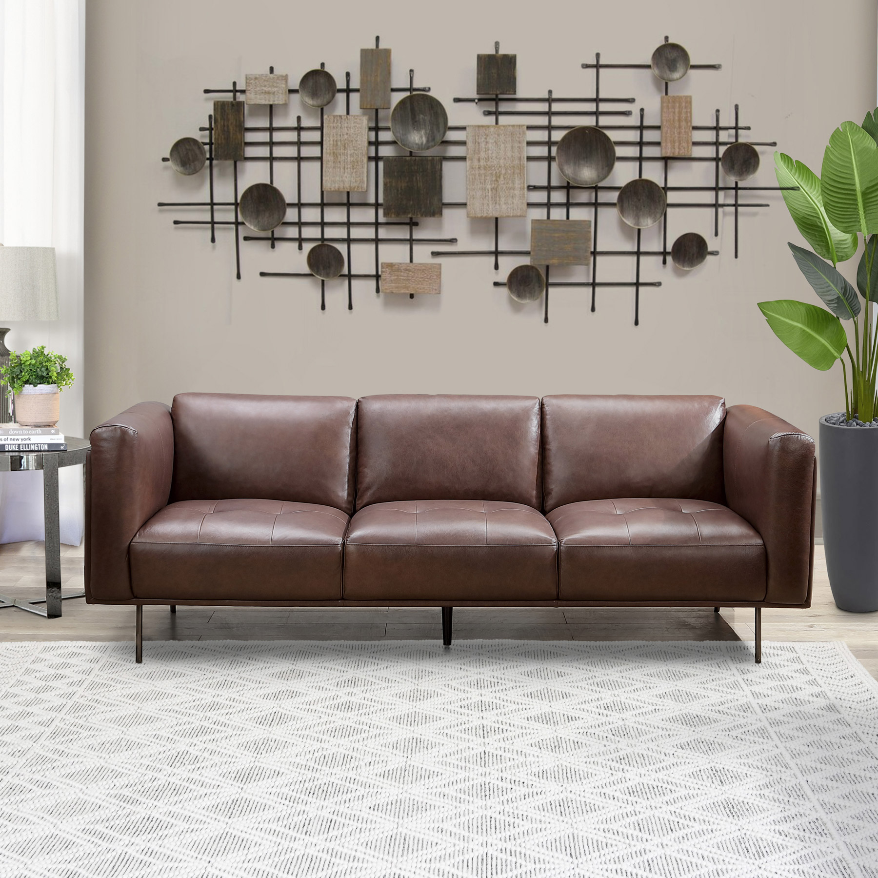 Product Label Where elegant tradition meets designer style – the Raven Sofa by Abbyson features subtle quilted top stitching and a clean, traditional design. Raven is upholstered in soft yet durable top grain leather on all seating areas with split grain leather on the sides and back. A seamless combination of 2.0 high density foam seat cushions and no-sag seat springs provides the right combination for maximum durability and lasting comfort, constructed to stand the test of time.