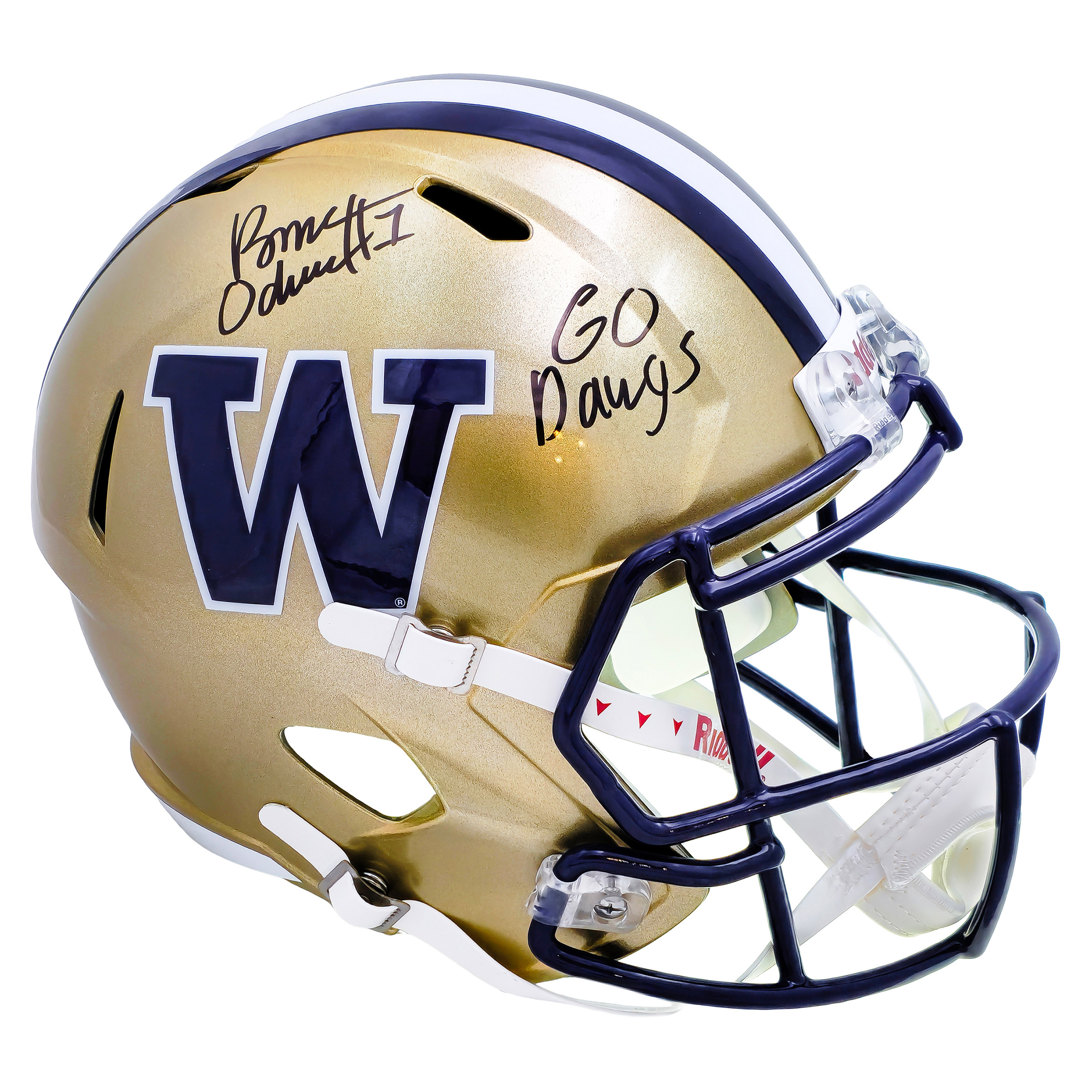 Rome Odunze Autographed Washington Huskies Gold Full Size Speed Replica Helmet "Go Dawgs" MCS Authenticated