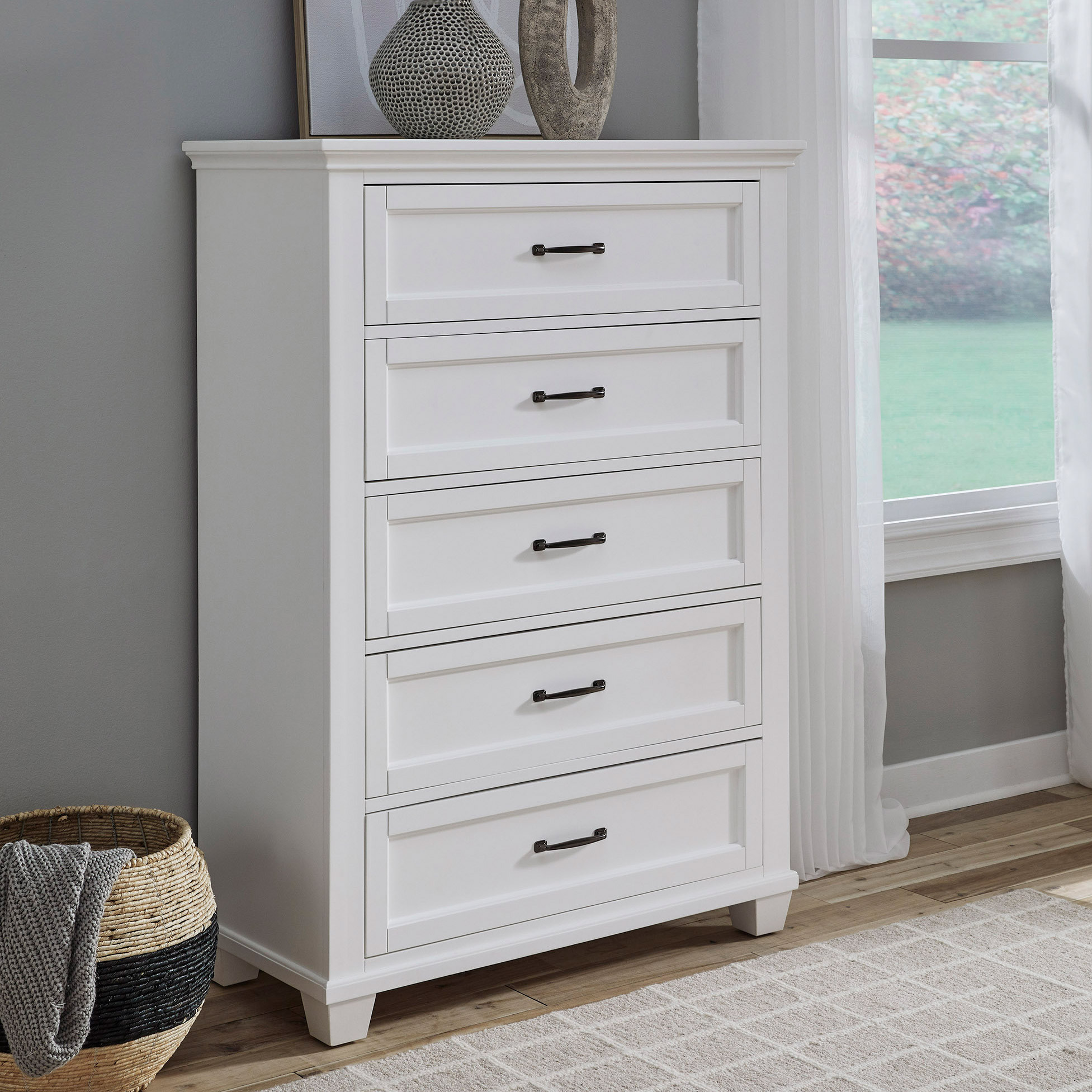 - Five Storage Drawers with English Dovetail Construction and Ball-Bearing Drawer Guides