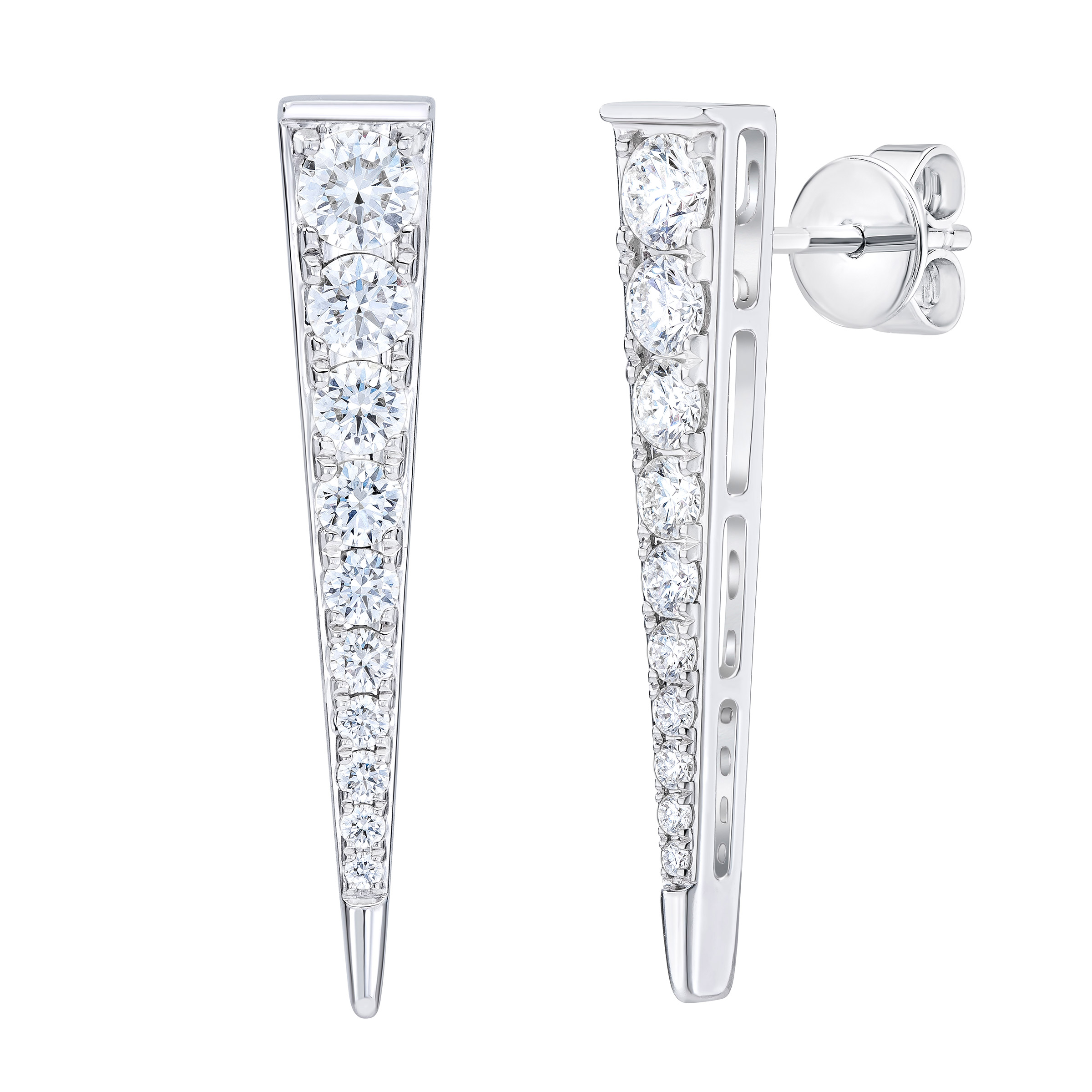 Round Brilliant 1.00 ctw VS2 Clarity, I Color Diamond 14kt White Gold Tapered Stick Earrings