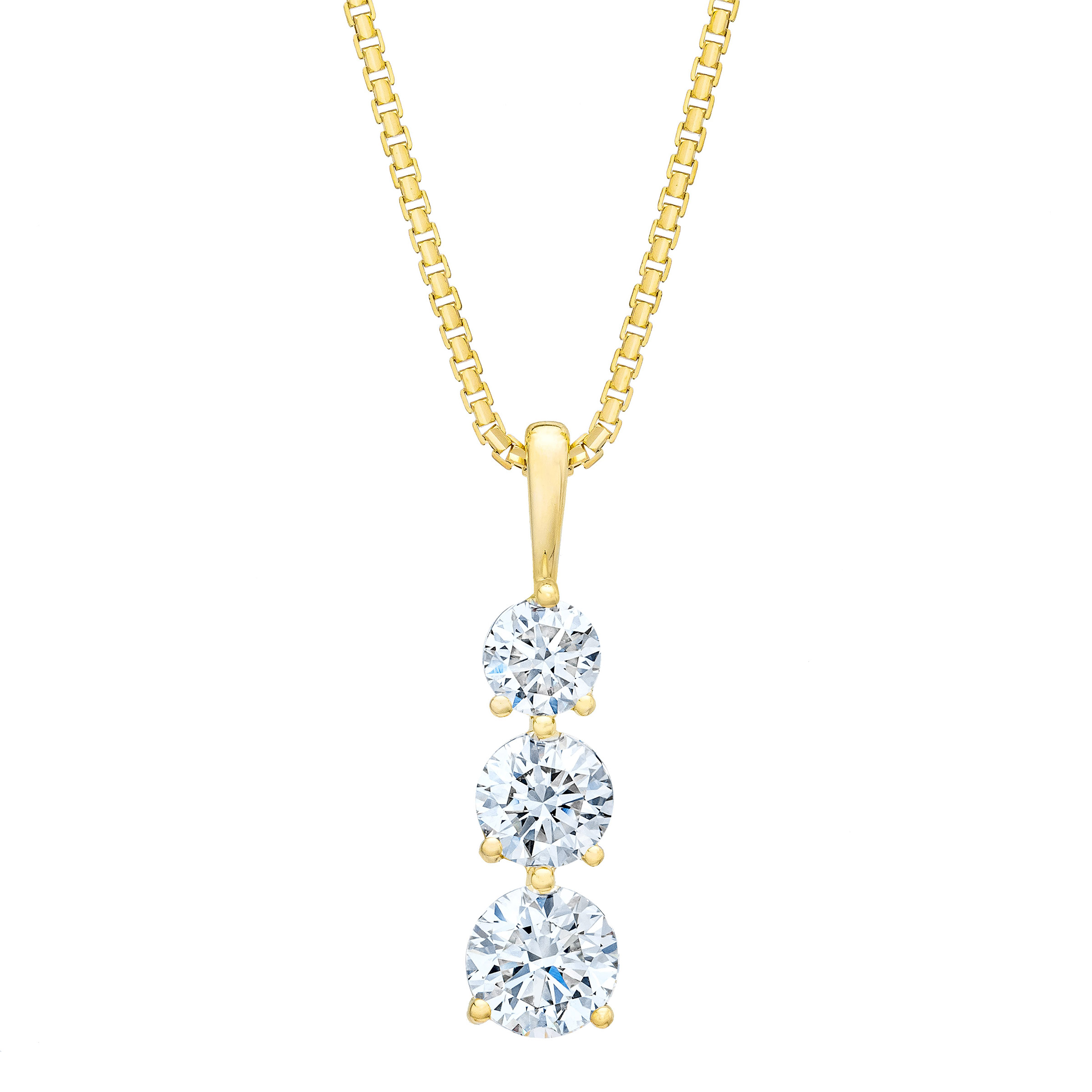 Round Brilliant 1.50 ctw VS2 Clarity, I Color Diamond 14kt Yellow Gold Three Stone Pendant