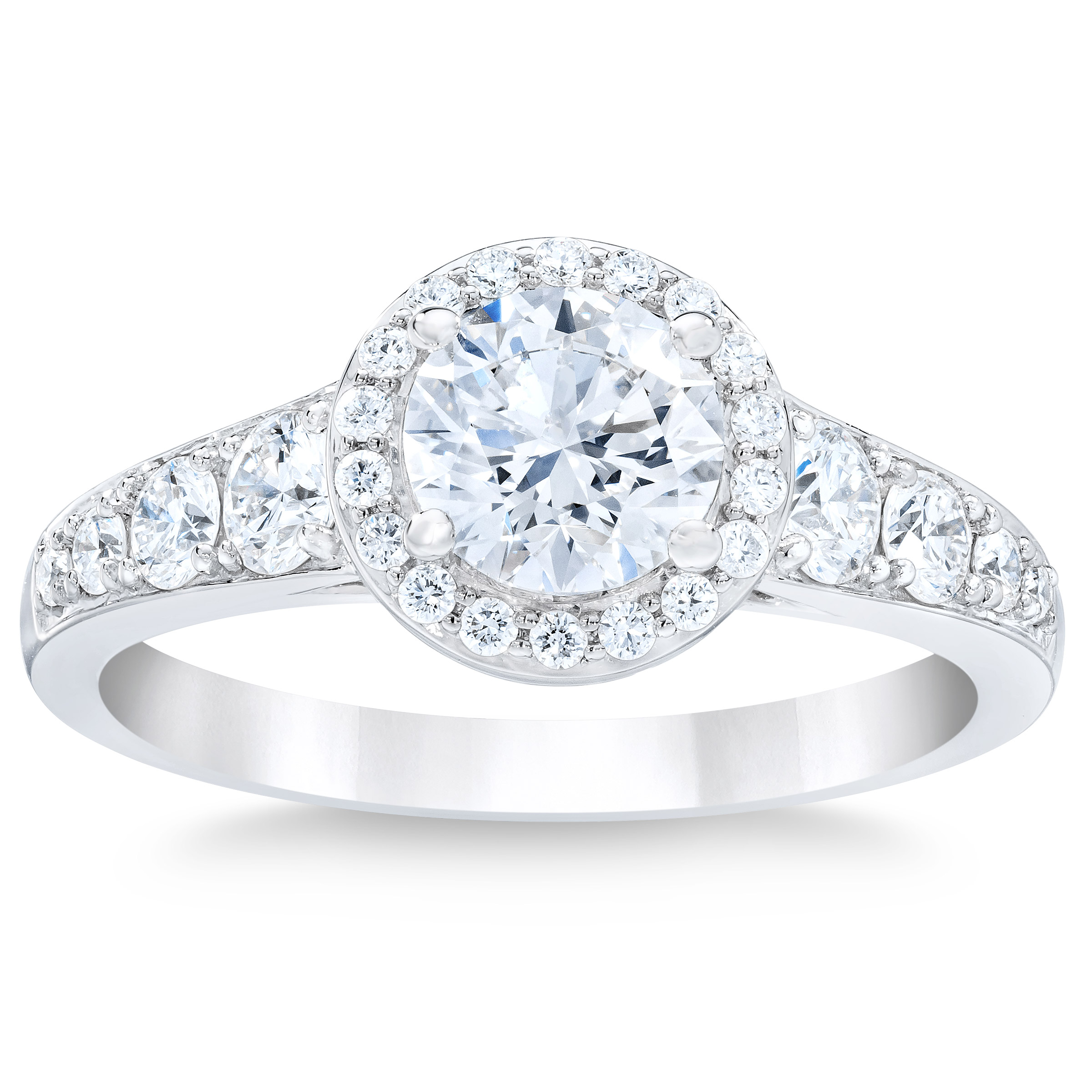 Round Brilliant 1.60 ctw VS2 Clarity, I Color Diamond Platinum Halo Ring
