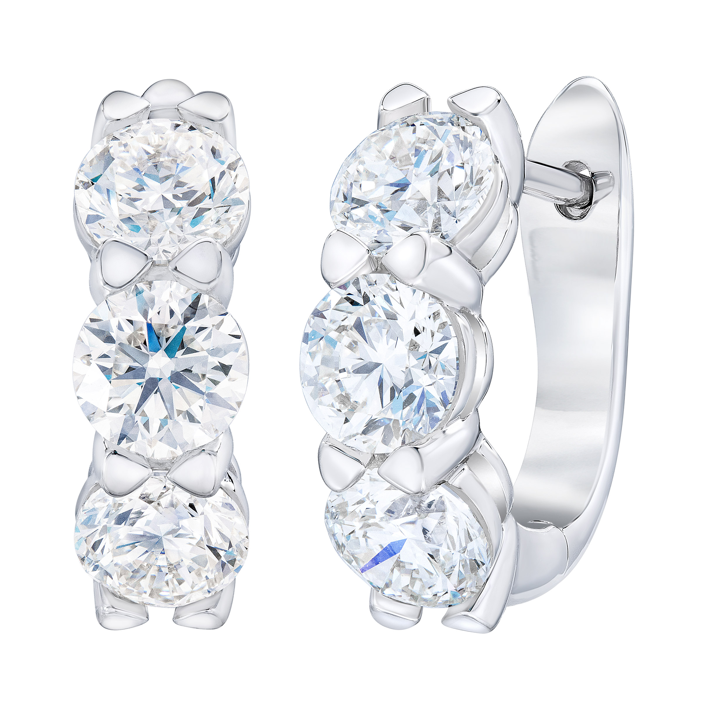 Round Brilliant 3.00 ctw VS2 Clarity, I Color Diamond 14kt White Gold Hoop Earrings