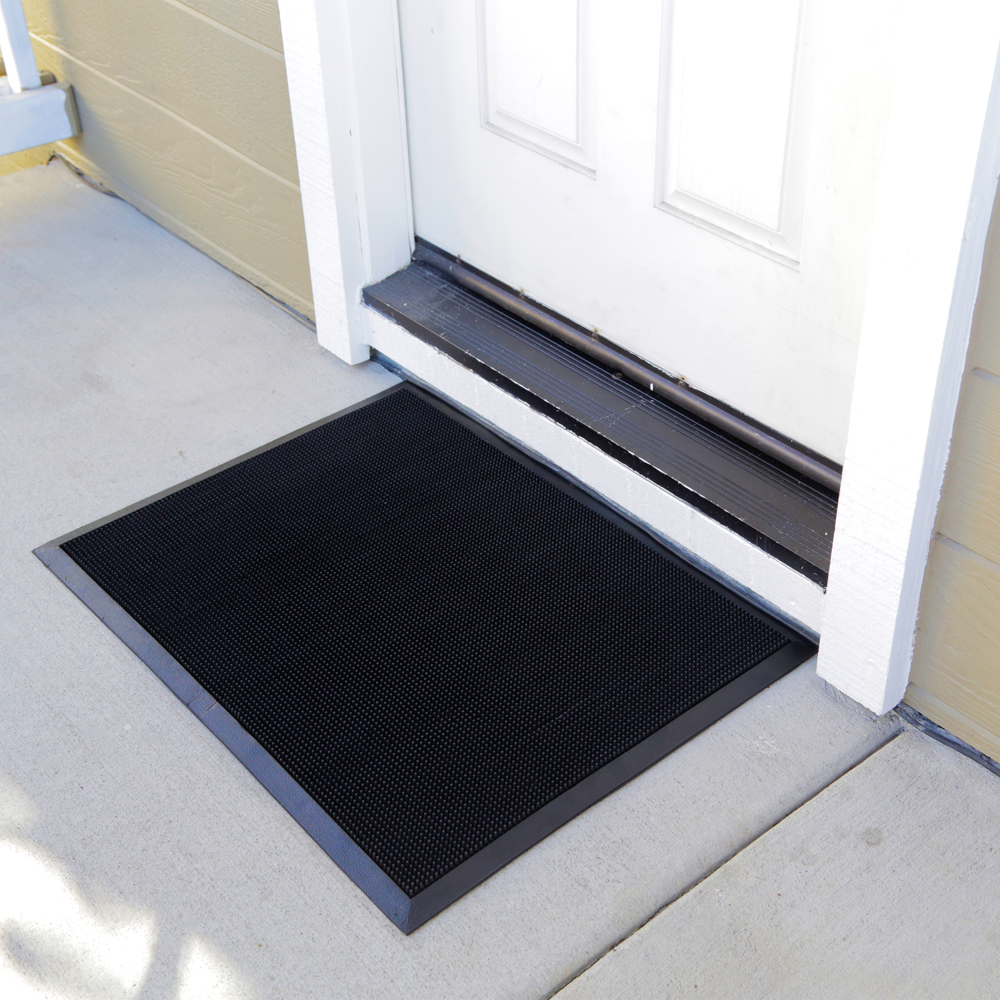 The 2 pack of Royal Entrance Mats is the premier outdoor rubber entrance mat that will stand up to very heavy traffic. The high grade, 100% rubber mat has thousands of durable rubber fingertips that aggressively remove dirt and grime from the bottom of your shoes keeping them from entering your home or business. Environmentally friendly- Made from 100% post-consumer recycled rubber salvaged from America's landfills. The fingers virtually capture debris and moisture as you walk across the mat. Beveled edges on all four sides hold debris and moisture in, protecting your carpets and floors. The excellent appearance of this mat is sure to make a great addition to any entrance or hallway. The 2 pack of Royal Entrance Mats are the ultimate lifetime entrance mats.