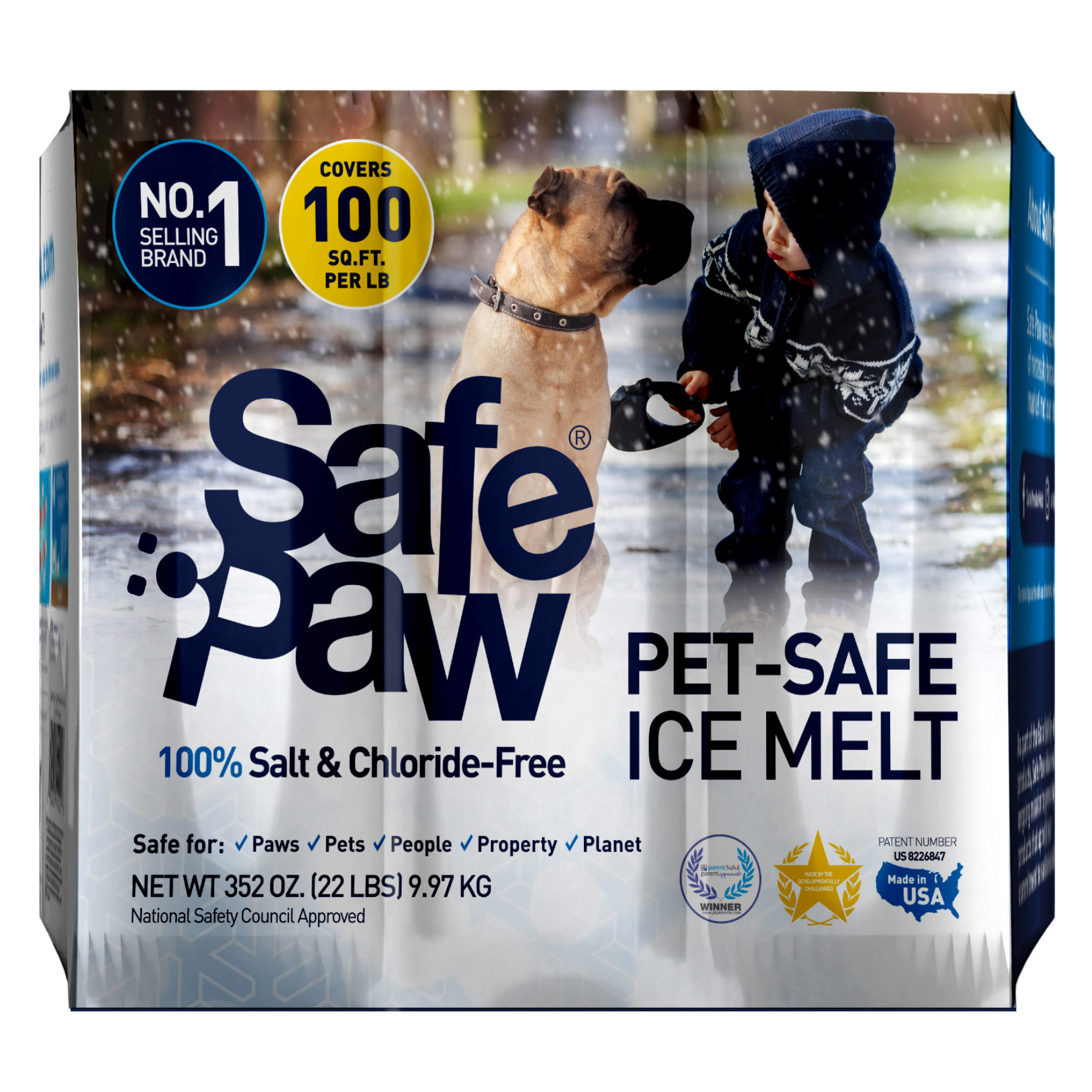 Safe Paw is a patented dual-effect compound made up of a crystalline amide core infused with special glycols. The liquid component starts melting ice instantly while breaking its surface tension. This allows the crystal core to quickly penetrate and destabilize the ice and speed up the melting process. Safe Paw proprietary traction agent provides slip protection. Safe Paw attracts heat to make it even more effective. Endothermic reaction takes advantage of a solar effect. Use half the amount you would normally use of salt.