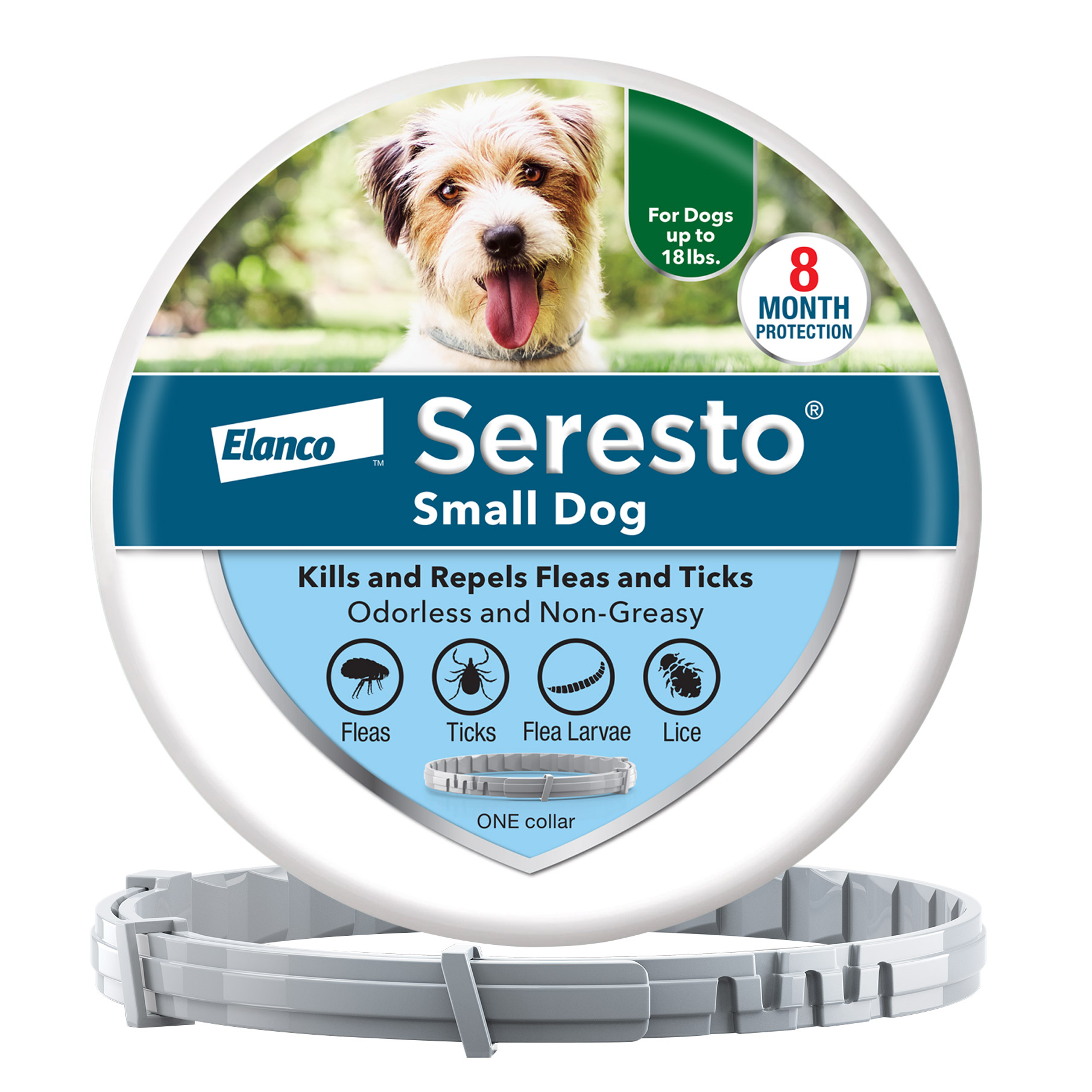 Protect your dog from fleas and ticks for 8 continuous months with Seresto. The Seresto 8-month flea and tick collar for dogs 7 weeks of age and older and up to 18 lbs provides continuous 8-month flea and tick protection. Unlike oral flea and tick protection products that require fleas and ticks to bite your pet to work, Seresto flea and tick collar for small dogs kills fleas and ticks through contact—no biting required.