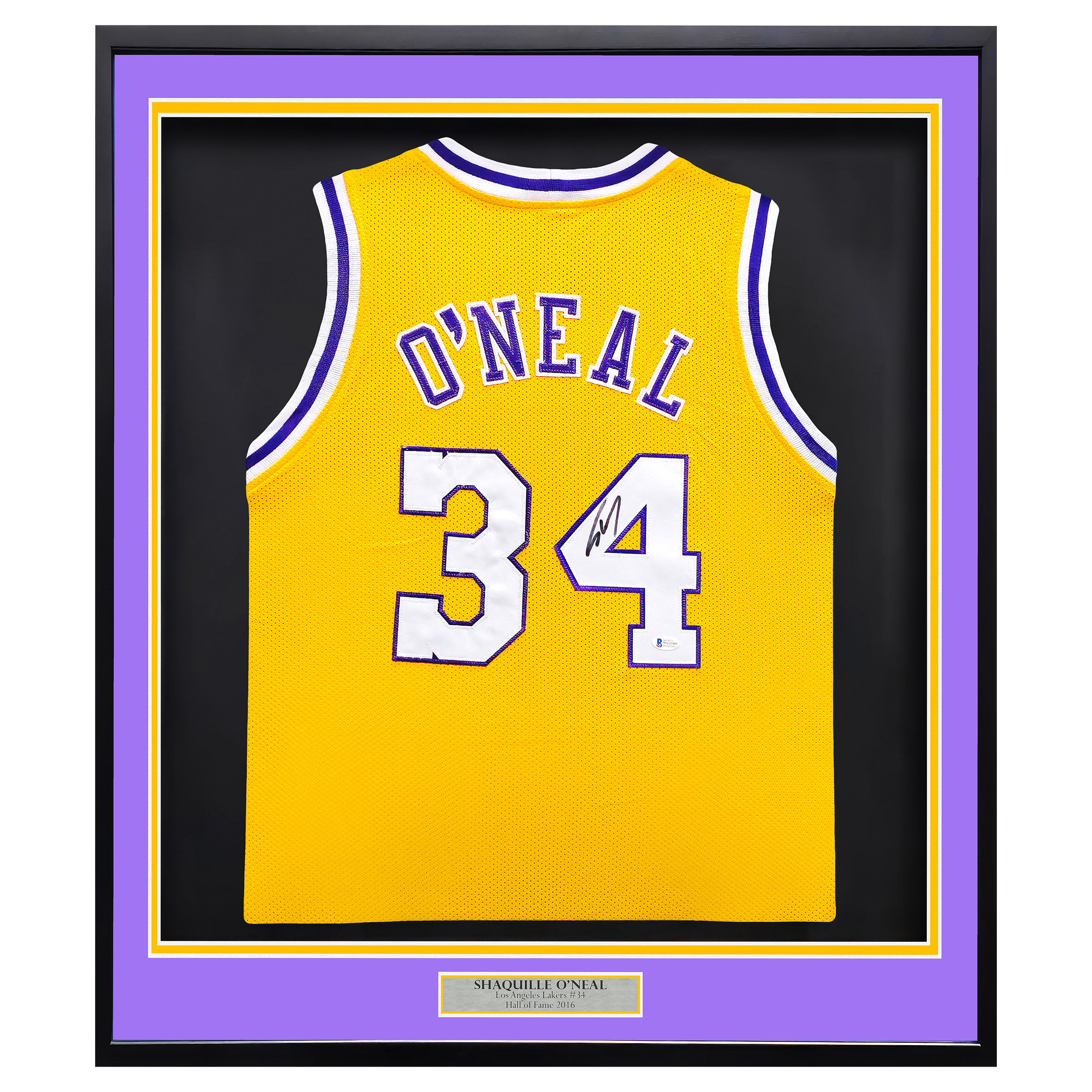 Shaquille "Shaq" O'Neal Autographed Framed Yellow Los Angeles Lakers Jersey - Beckett Authenticated