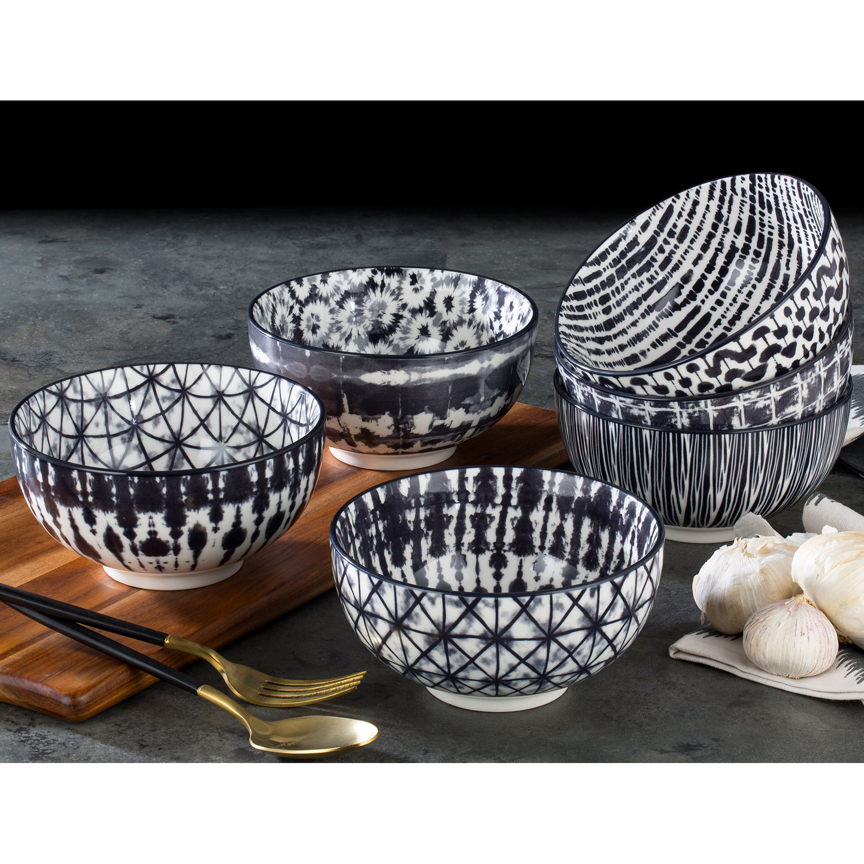 These printed bowls with tie dye patterns are a fun and functional addition to your kitchen. Microwave and dishwasher safe ensure easy to live with function and they are stackable for efficient storage. Made from high fired stoneware, the bowls are durable for everyday use.