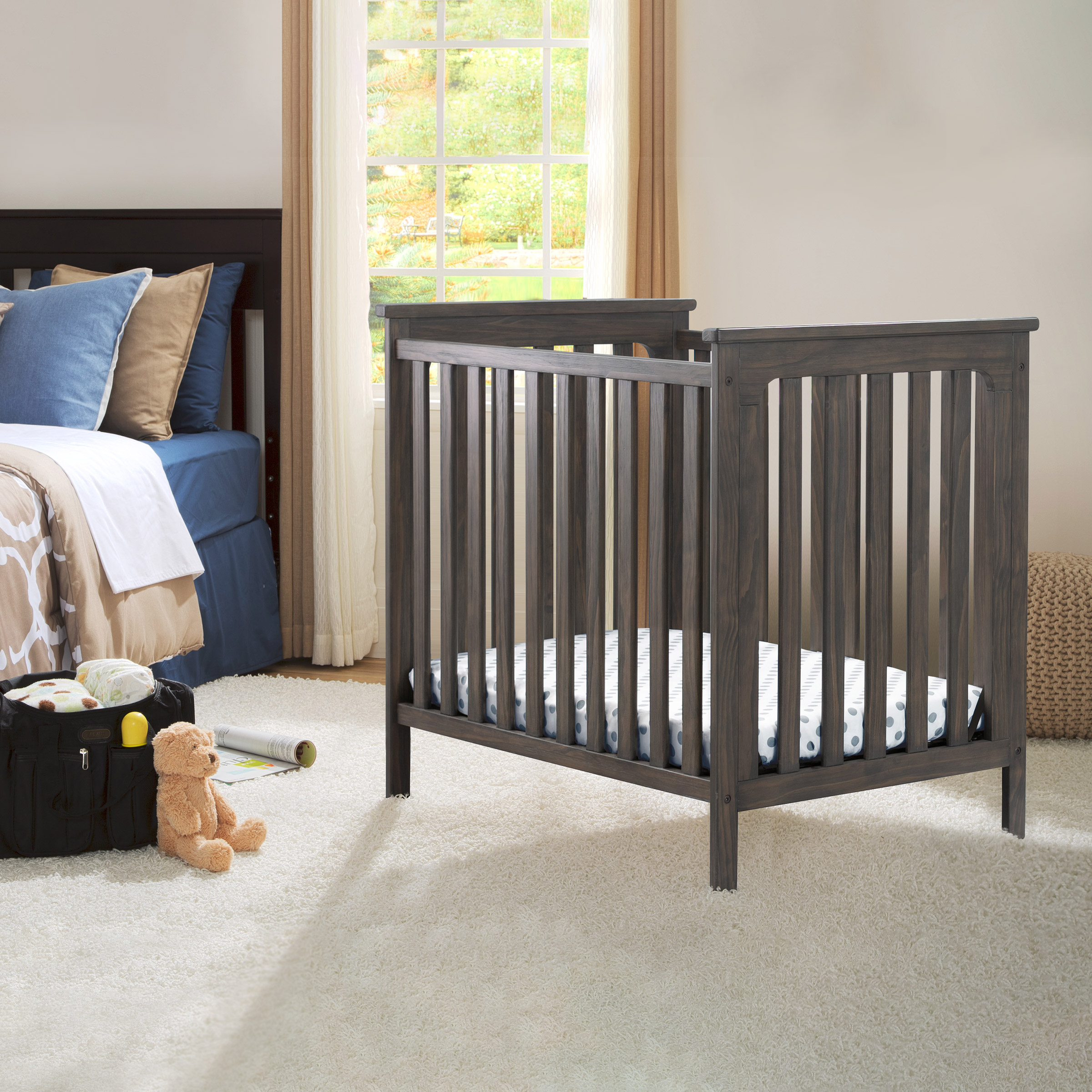 The Hudson Mini Crib is designed for apartments, smaller nurseries, or as a spare crib. It includes an adjustable height mattress support: the highest position is for your newborn, and the lowest position should be used as your child begins to sit or stand. Includes a 2.75” thick mattress and is JPMA certified.