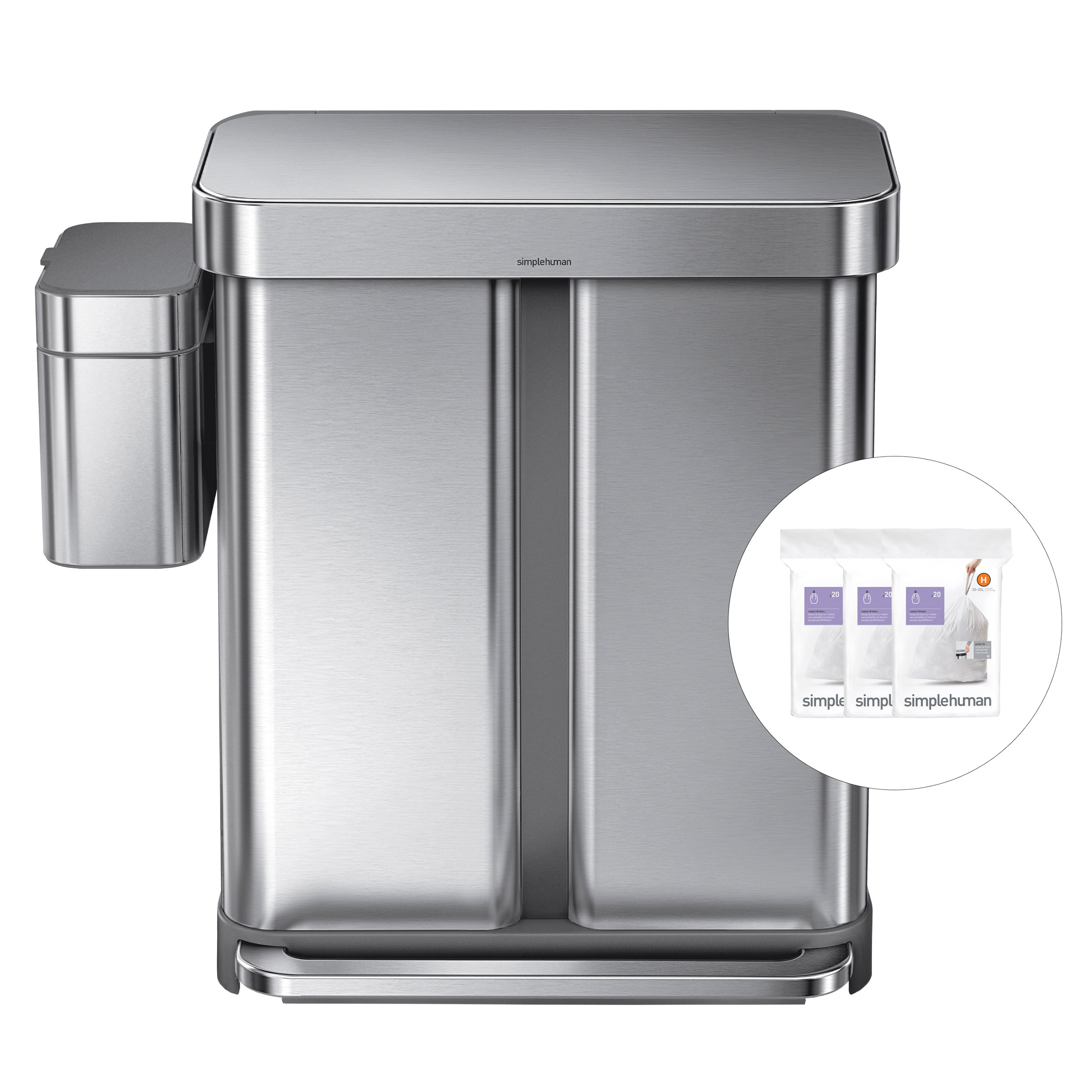 simplehuman 58L Dual Compartment Step Can with Compost Caddy and Code H Liners, 60-pack