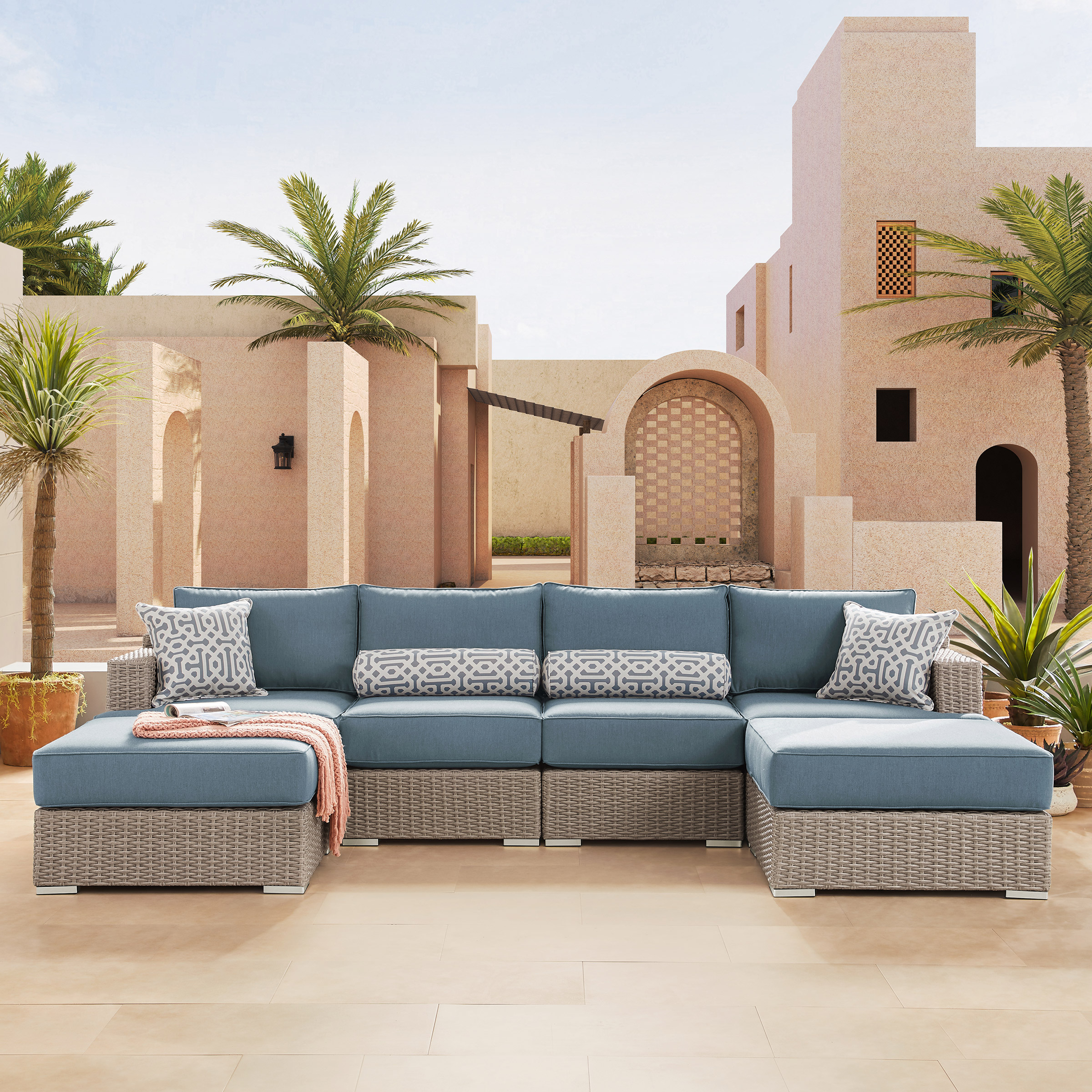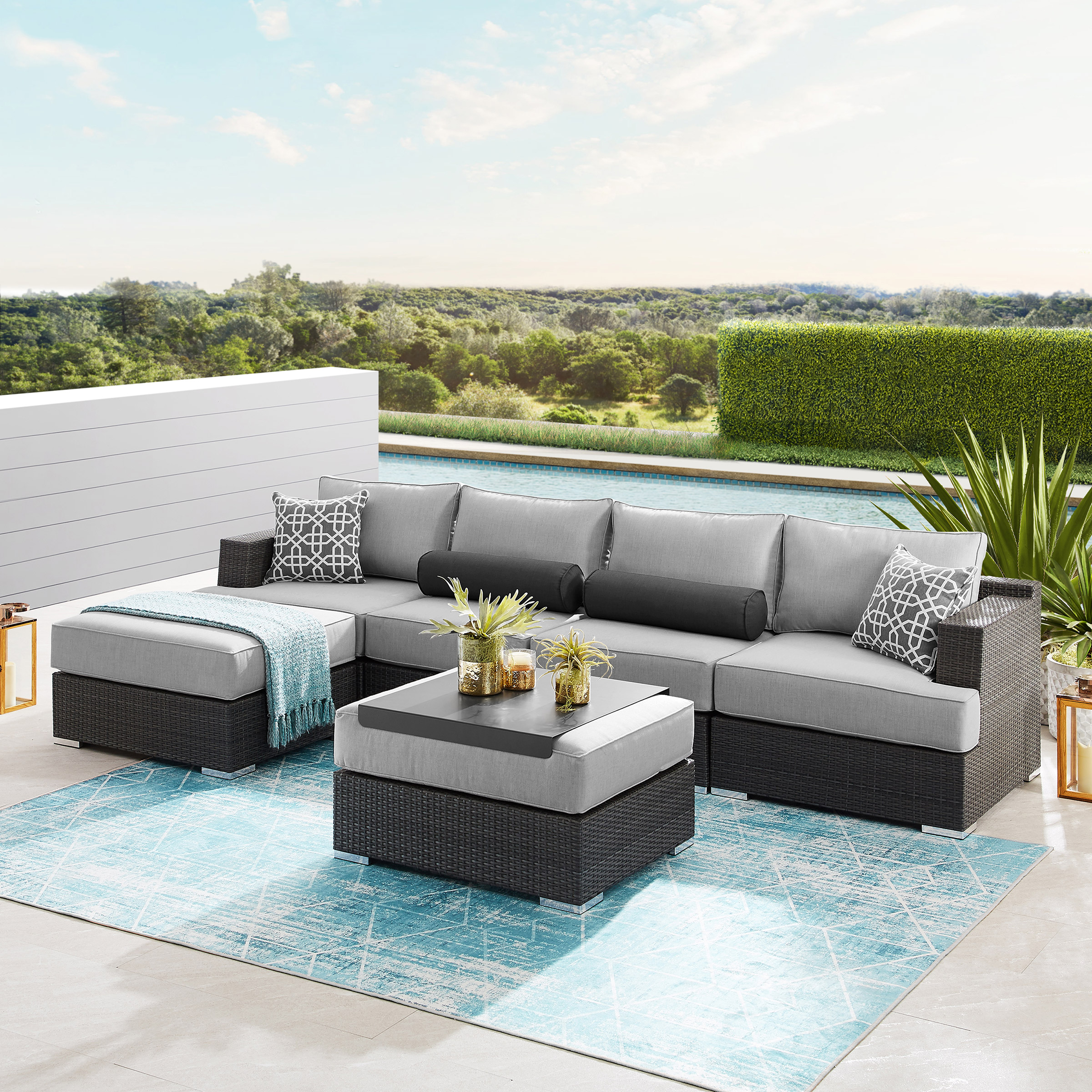 - Includes: Left Arm Section, Right Arm Section, Two Armless Sections, Two Ottomans and an Ottoman Tray