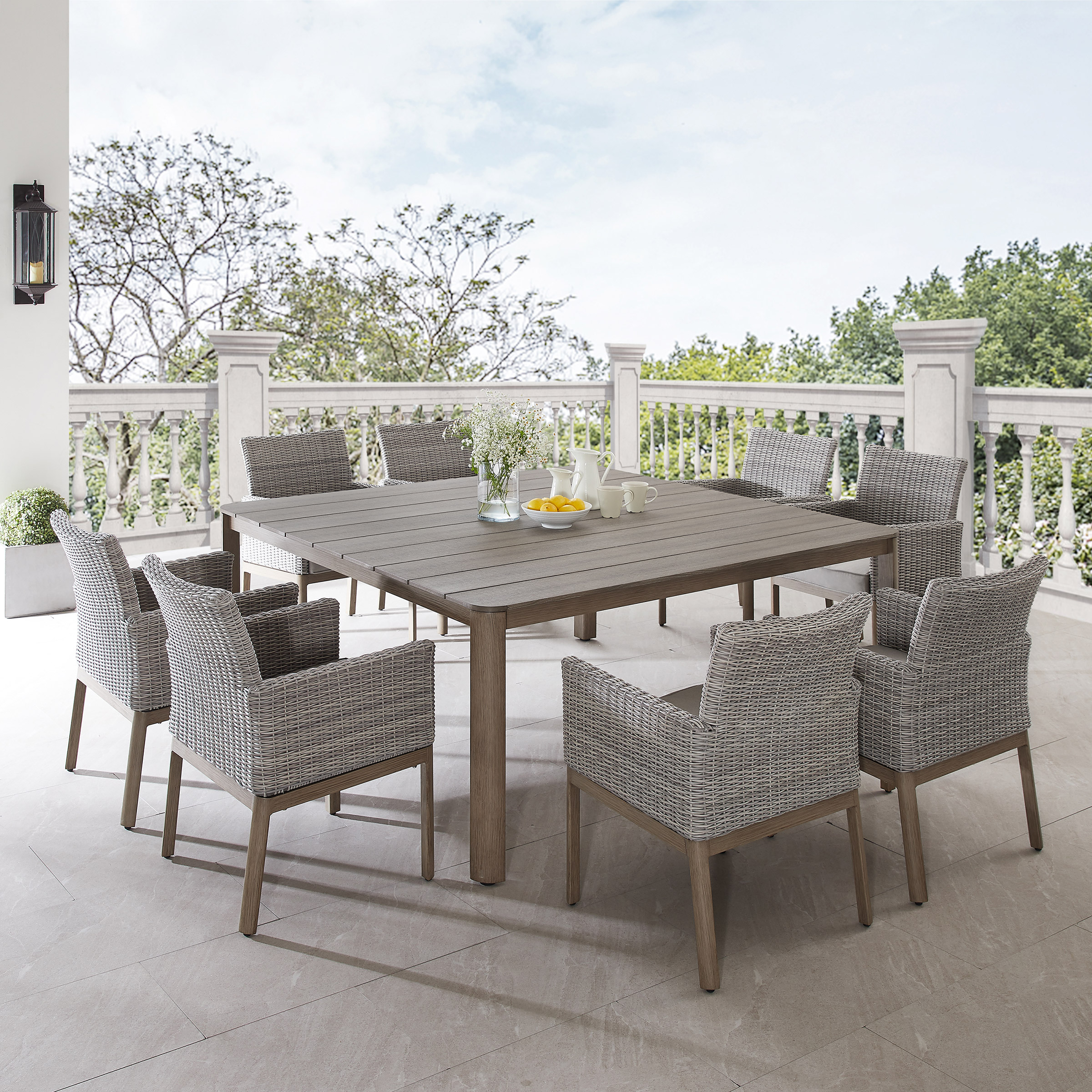 - Includes: One Dining Table and Eight Dining Arm Chairs