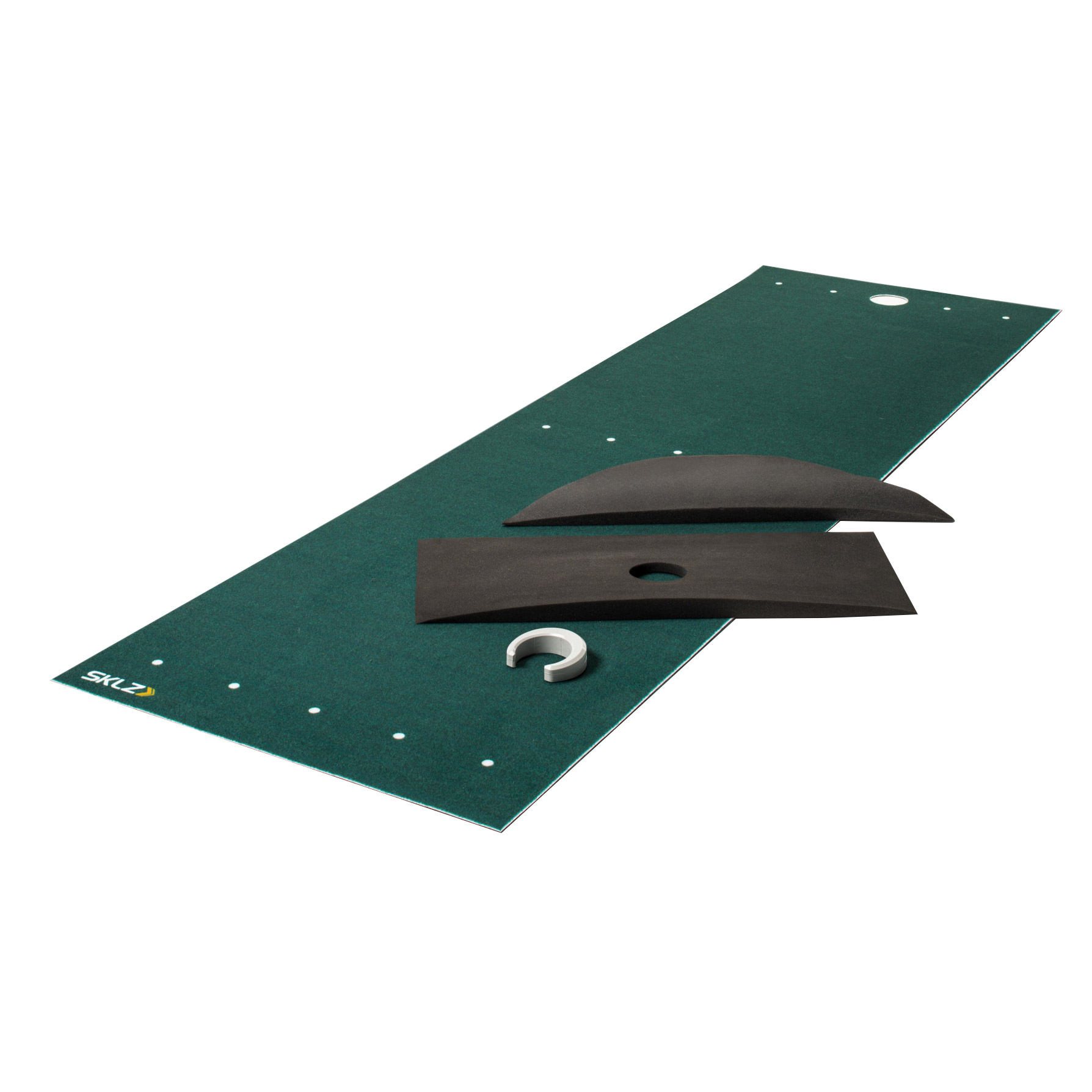 The best-in-class SKLZ Vari-Break Practice Green is 10ft long and 3ft wide with true-roll surface. Adjustable foam wedges create breaks and rolls that simulate on-course conditions in your home or office. Midway target points help pinpoint putting lines while the included Putt Pocket reduces the cup’s size to build the precise aim and alignment that sinks more putts.
