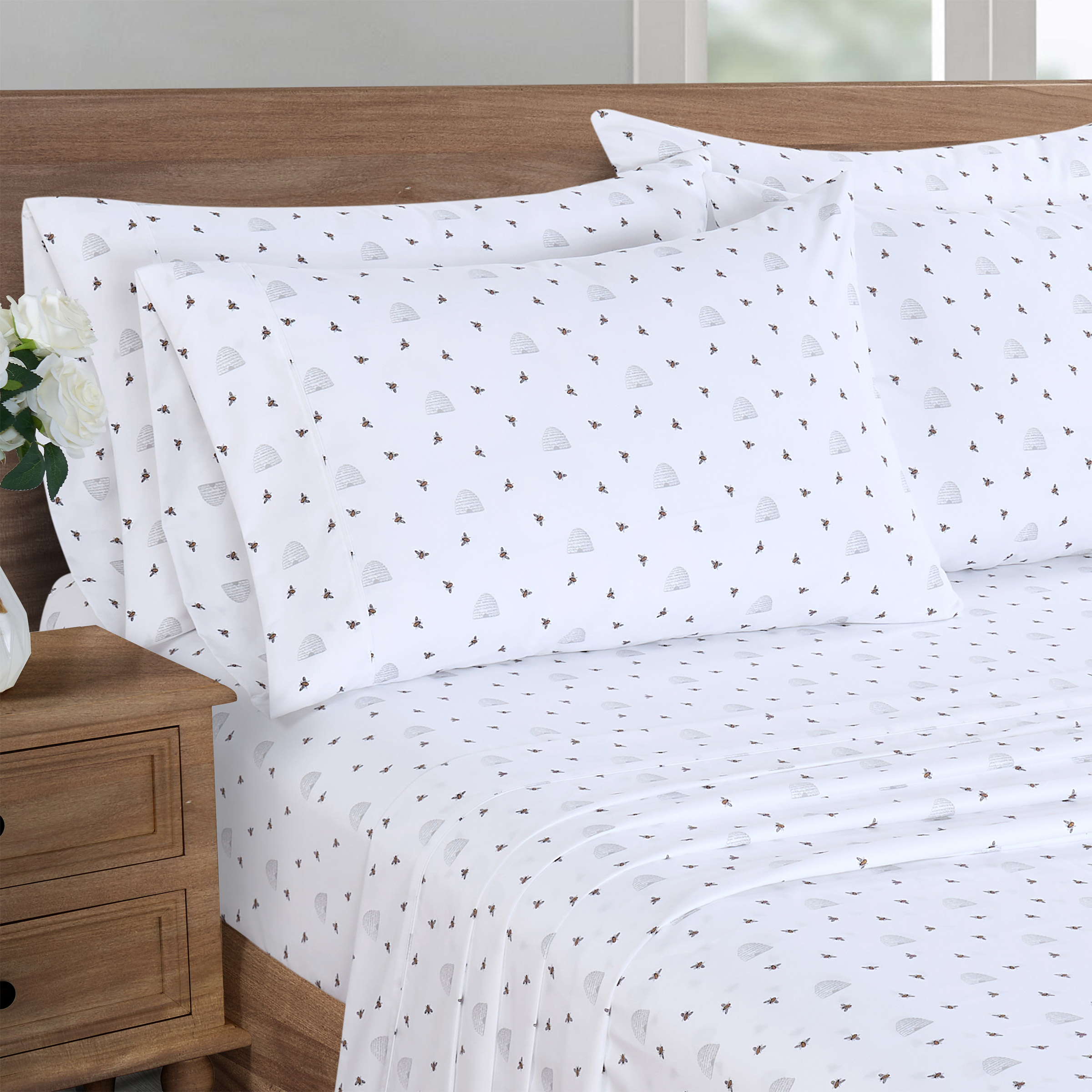 - Queen and King Sets Include: 1 Printed Flat Sheet, 1 Printed Fitted Sheet, 4 Printed Pillowcases