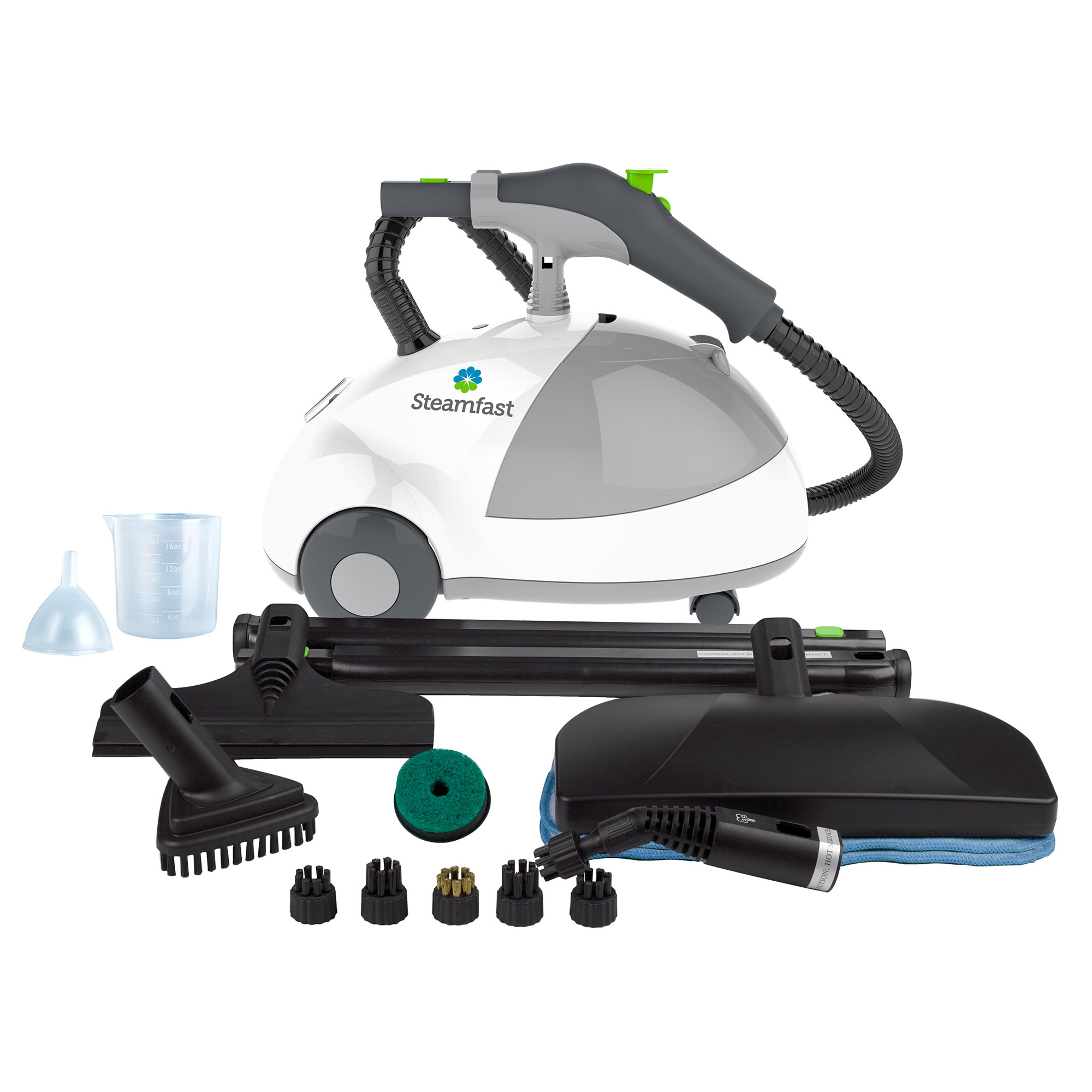 The Steamfast SF-275 Canister Steam Cleaner is a heavy-duty solution for those who are serious about steam cleaning. Using ordinary water heated to over 200°F, the Steam Cleaner effectively and naturally cleans and sanitizes a wide variety of surfaces. With professional steam power and a versatile array of attachments, the Steam Cleaner is designed for tackling the toughest jobs throughout your home. From shower door to children’s toys, carpeting and barbecue grills, there's no job to big – or too small – for the Canister Steam Cleaner.This SF-275 Steam Cleaner also comes with the steam mop attachments and 4 microfiber cleaning pads to clean and sanitize the stovetop, countertops, and a wide variety of hard floor surfaces, such as sealed hardwood & laminate, stained concrete, linoleum, ceramic, granite, marble, slate, and much more. The easy-stick microfiber pads are effective at grabbing and trapping dirt, dust and debris without scratching surfaces.Set Includes:
