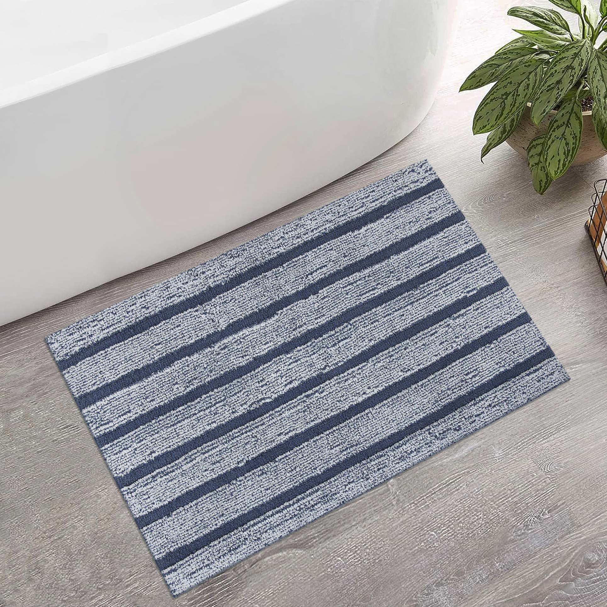 The Striped Bath Mat is nicely sized at 24” x 36” and features a tonal stripe design. Made with 100% polyester yarns, this bath rug feels soft underfoot and a gel latex non skid has been added for safety. Oeko Tex Certified.   Includes: (1) 24" x 36" bath rug Features: