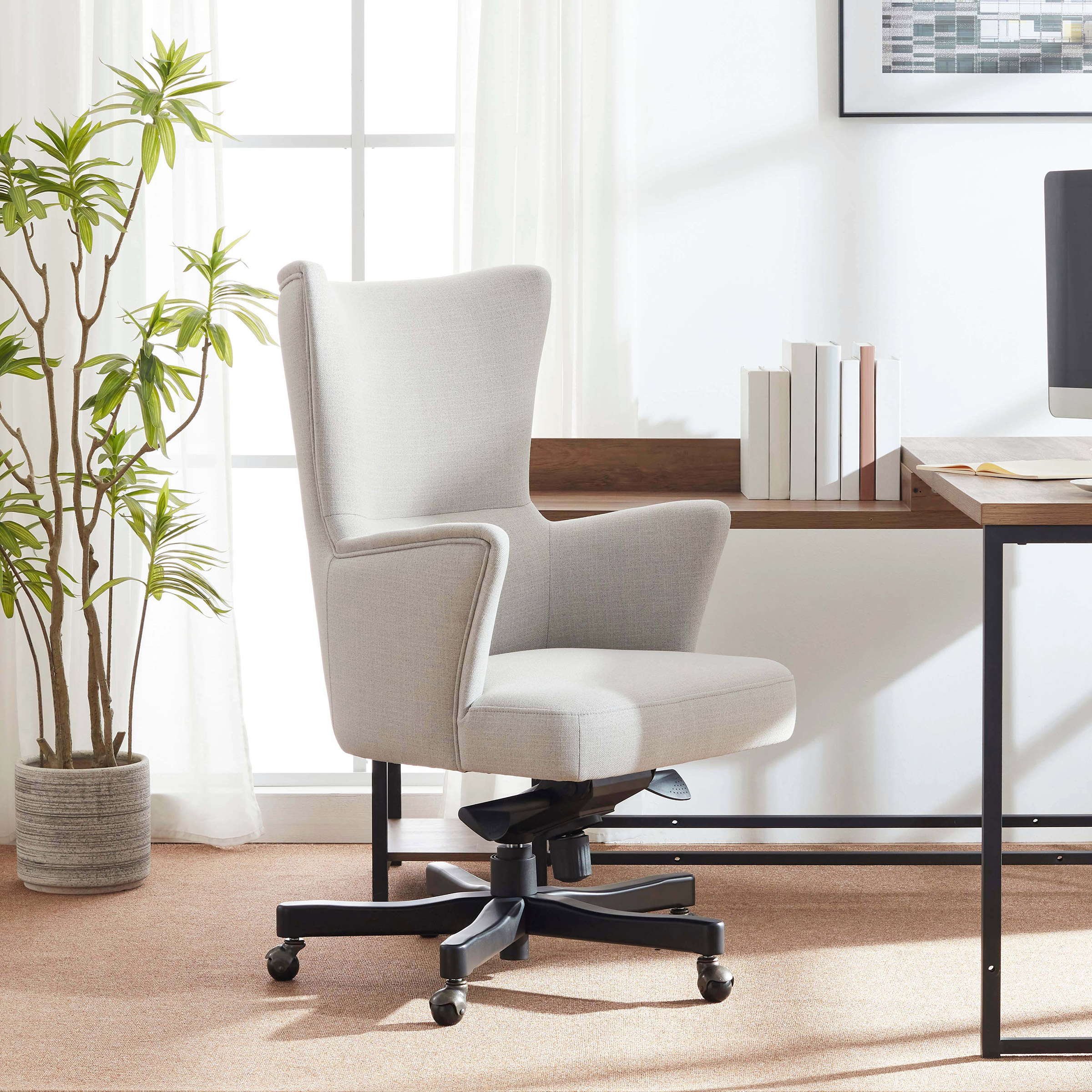 Work in style and comfort in the beautiful Stromm Fabric Home Office Chair by Gilman Creek. Decorating your office has never been easier than with this modern home office chair. Stromm's elegant yet straightforward features carry the theme of simple sophistication from top to bottom, allowing you to enjoy the office of your dreams. The sleek, supportive back frame and solid metal legs with wood cover provide sturdy support. Maximum style and comfort arise by combining sloped arms and charcoal fabric upholstery. Work from home with flexibility, tilt function, 360 degree swivel chair, and adjustable height.