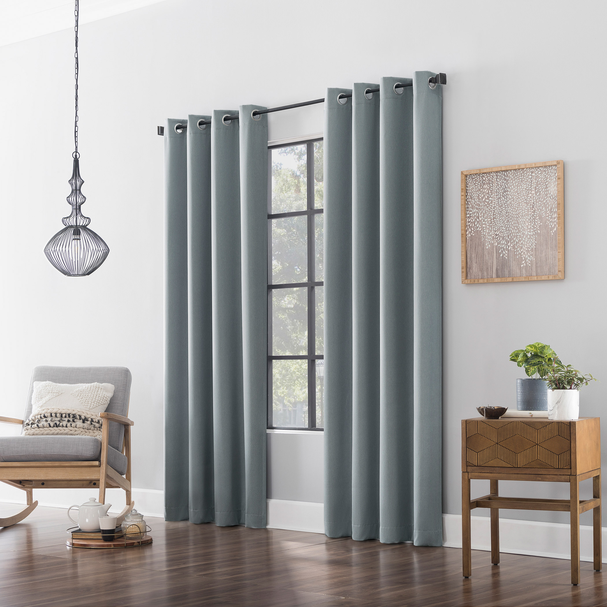 - Includes 2 Blackout Curtain Panels with Built-in Metal Grommets