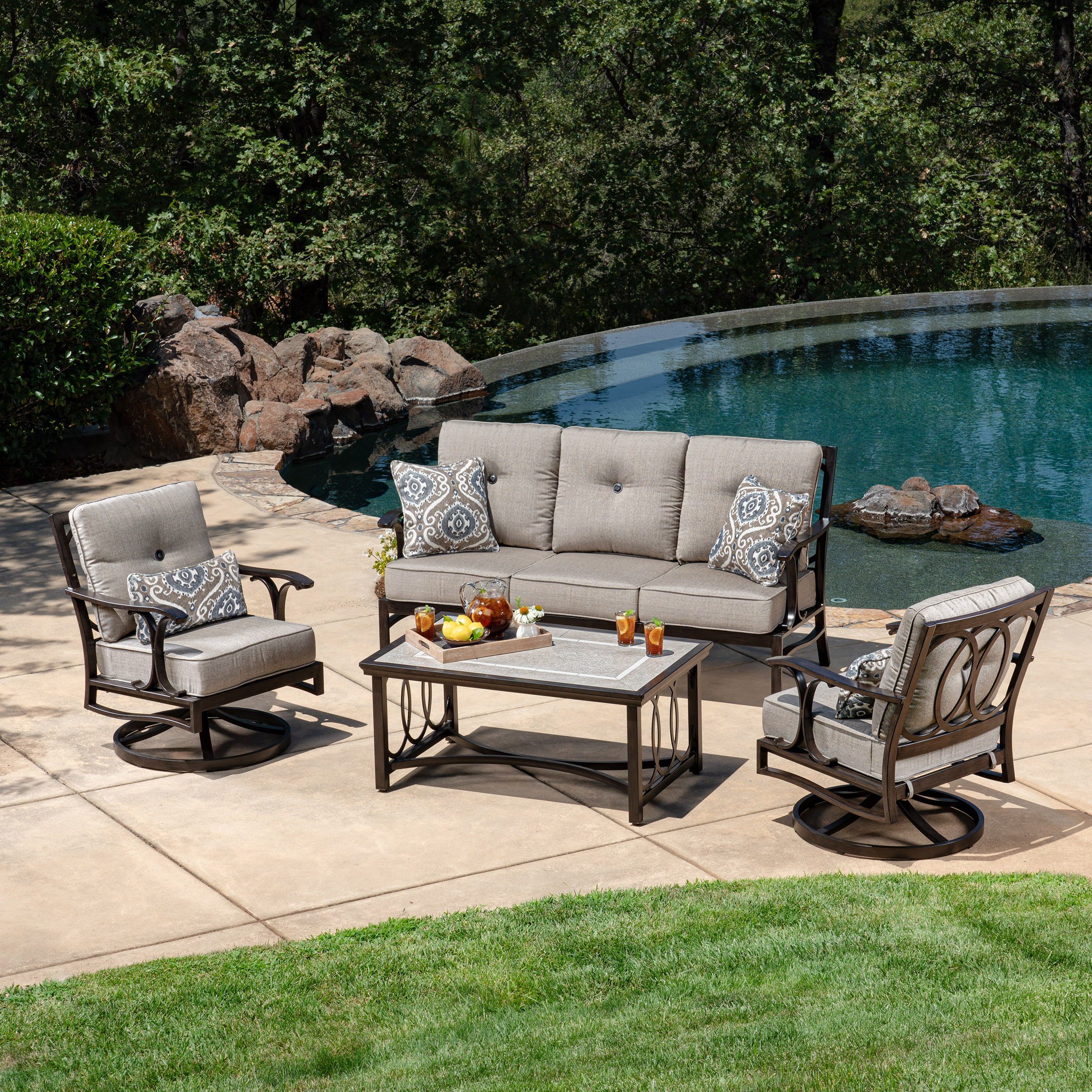 - Cushions Are Made with Sunbrella® Fabric That Is Resistant to Stains, Mildew, Chlorine and Fading