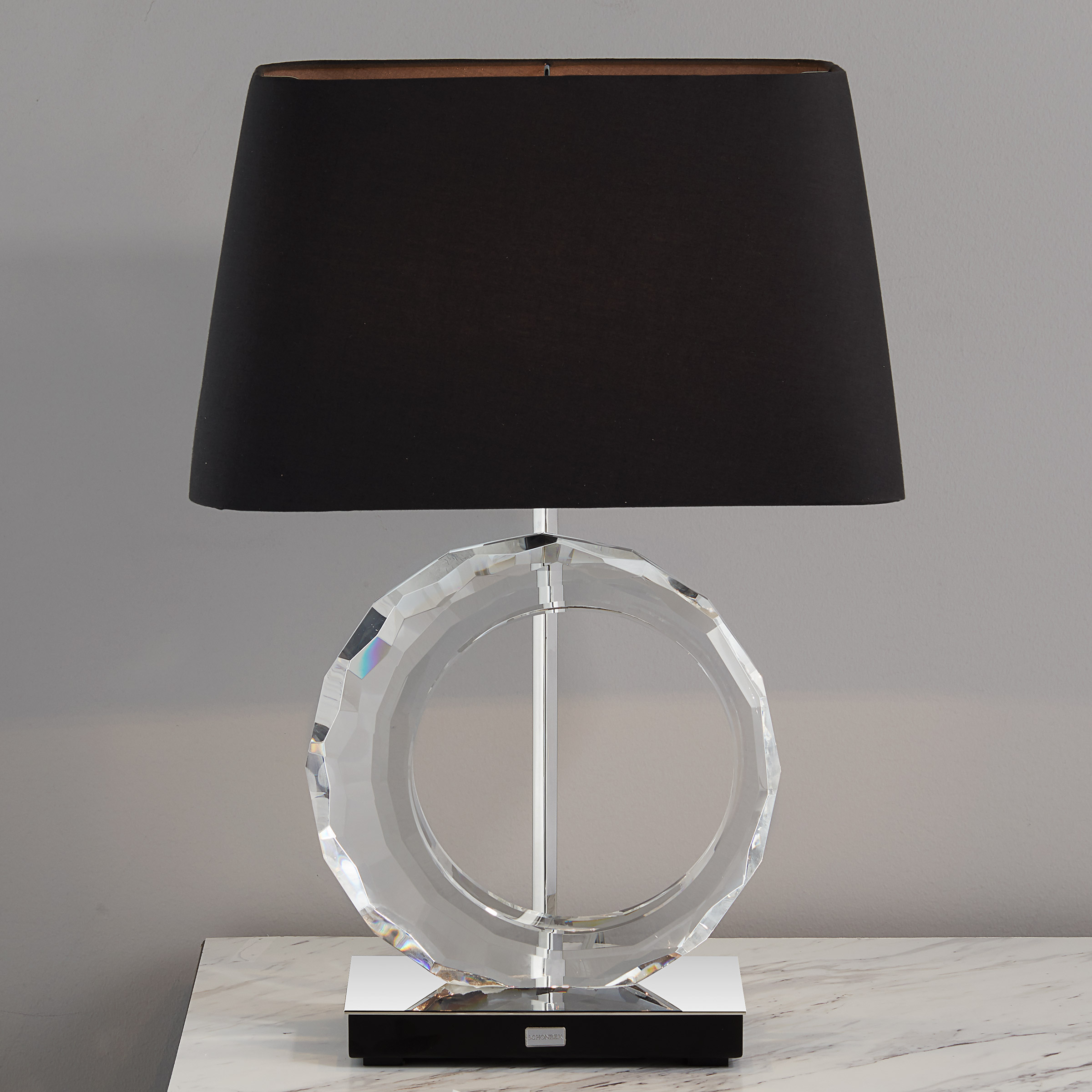 Massive chunks of crown glass transform the Boutique Lamp collection into lit pieces of art. The body of each lamp is formed by a faceted, large optic crystal offered in three dramatic shapes - circle, half curve or inverted triangle. Each offers a bold scale coupled with an unparalleled feeling of balance and grace. Sleek and clean in design, these lamps will be the focal point of any room.Features: