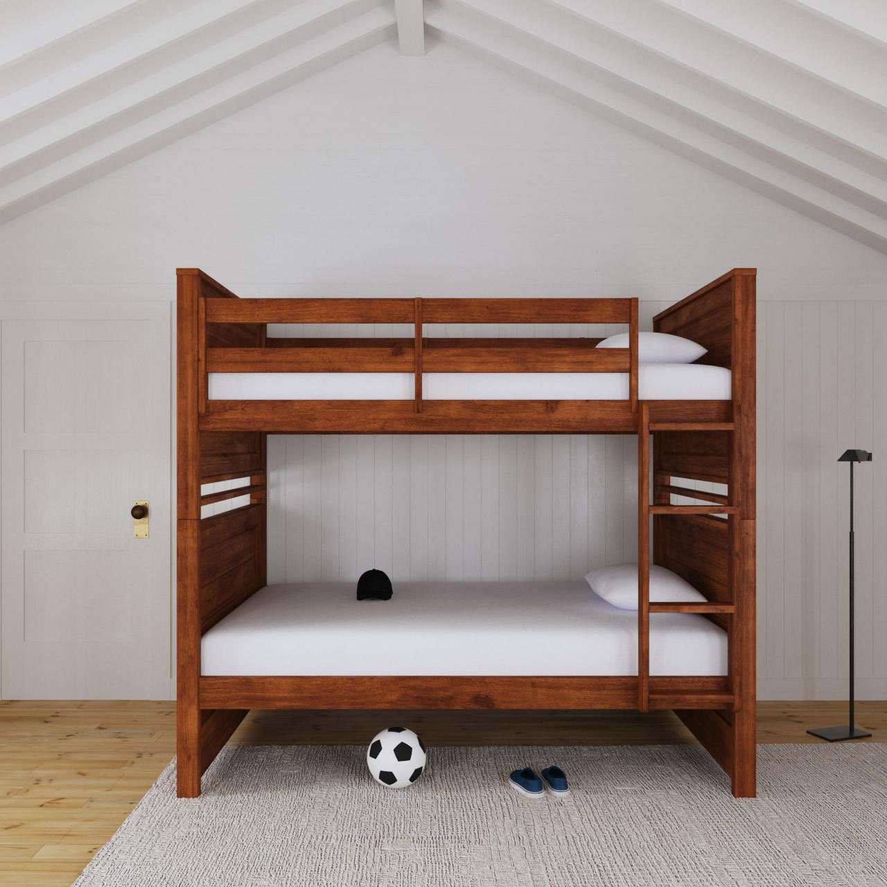 The Tanner Full over Full Bunkbed set, with its classic Americana design and weighty dimension stock add to the strength, beauty, ruggedness and durability. Traditional in styling, the tobacco finish further accents the collection. Timeless style warmly complemented with a unique combination of fit and finish the Tanner exhibits strength, flexibility and possibility and makes the room easy to live in and allows ideas to evolve and expressions to thrive.