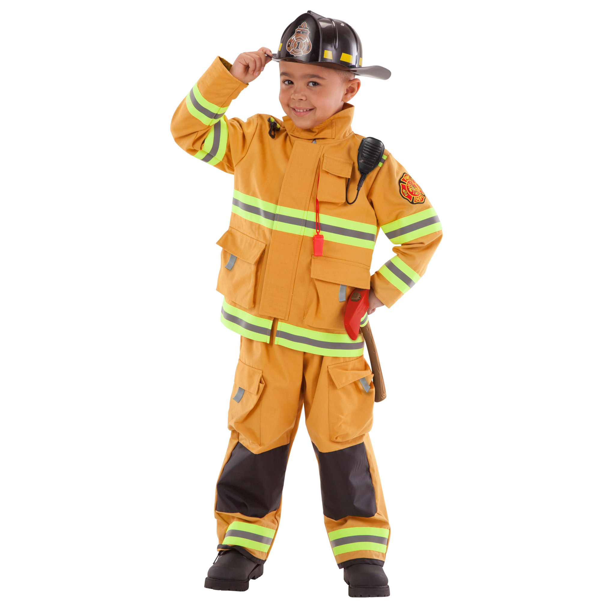 Realistic-looking Firefighter costume in rugged, comfortable cotton-blend fabric, generously cut to accommodate active play. Rugged role-play. Absolutely encouraged! Traditionally themed Adventure Factory® costumes will stand up to frequent, extended playtimes. These well-designed and detailed costumes include fun accessories, sure to spark your child’s imagination. Please note: not all costumes available in all sizes. Specifications: