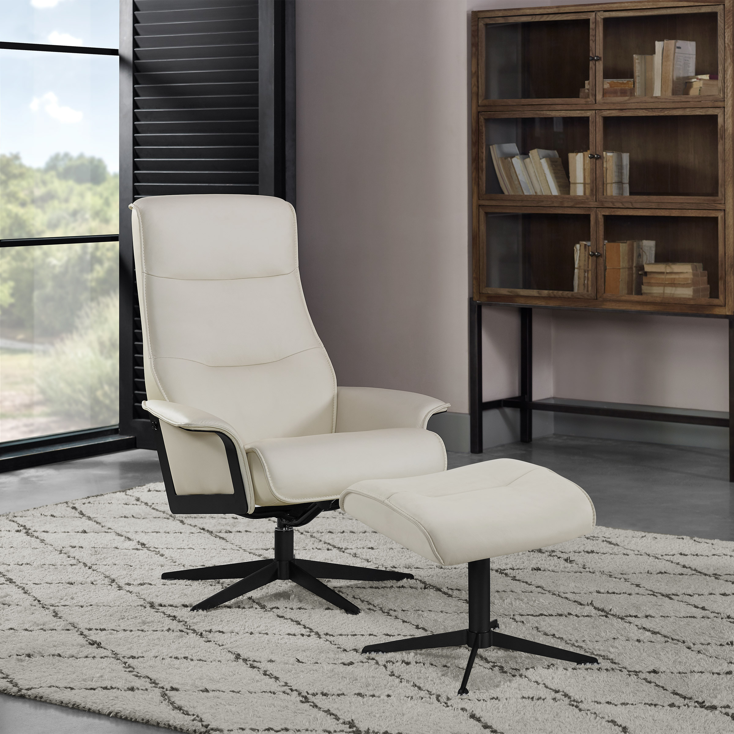 Add style to your space with the Thomasville Pedestal Recliner with Ottoman that offers quality features in construction, leather and styling. The luxurious Top Grain Leather adorns all seating surfaces offering a smooth feel to the touch. The clean detailed lines and black metal finishes enhance the overall tailoring and design. The seat cushion features pocket coils and sinuous springs for the ultimate comfort. Enjoy the recline feature with an angled ottoman for complete leg support and a truly comfortable recline.