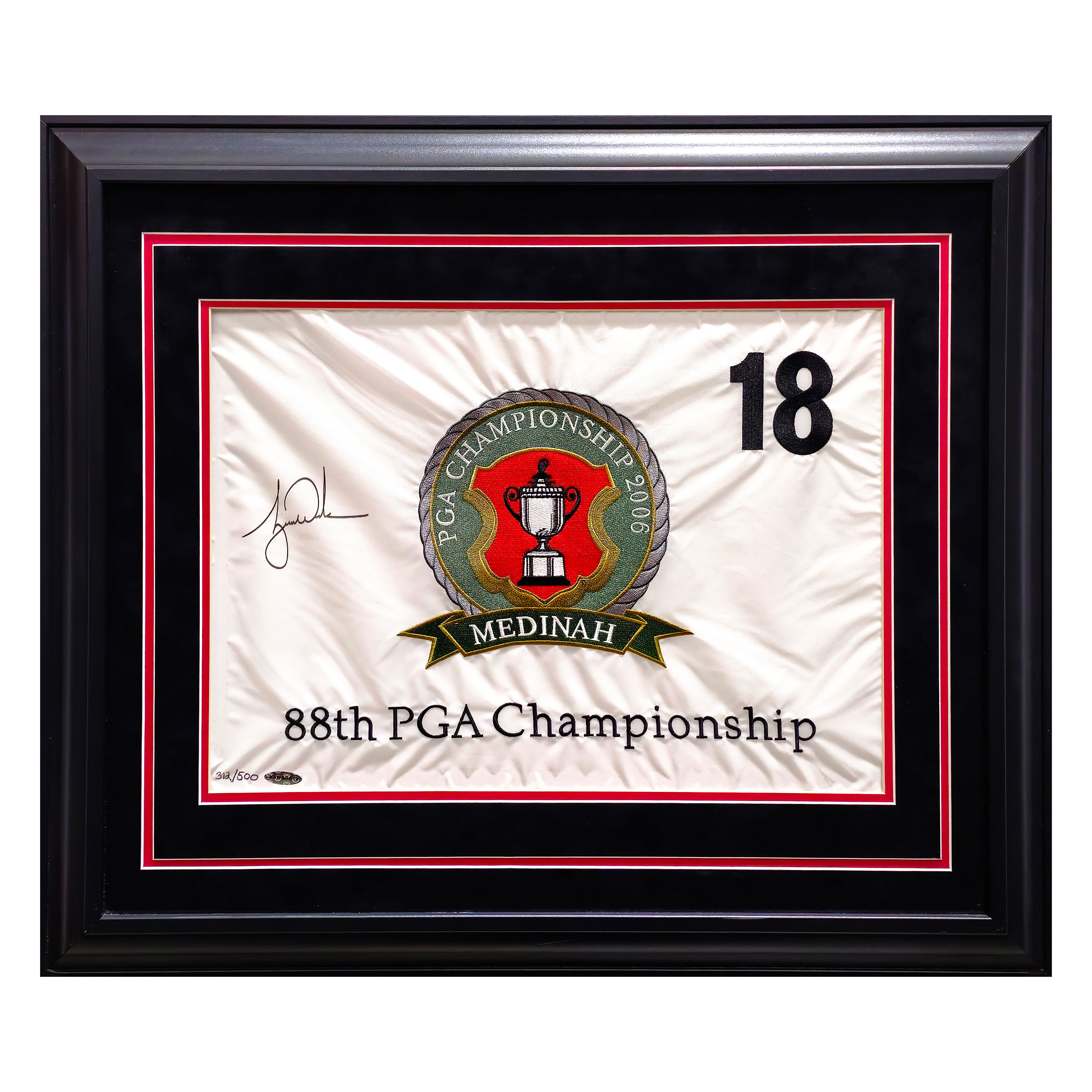 Tiger Woods Autographed Framed 2006 PGA Championship Golf Pin Flag #312/500 - Upper Deck Authenticated