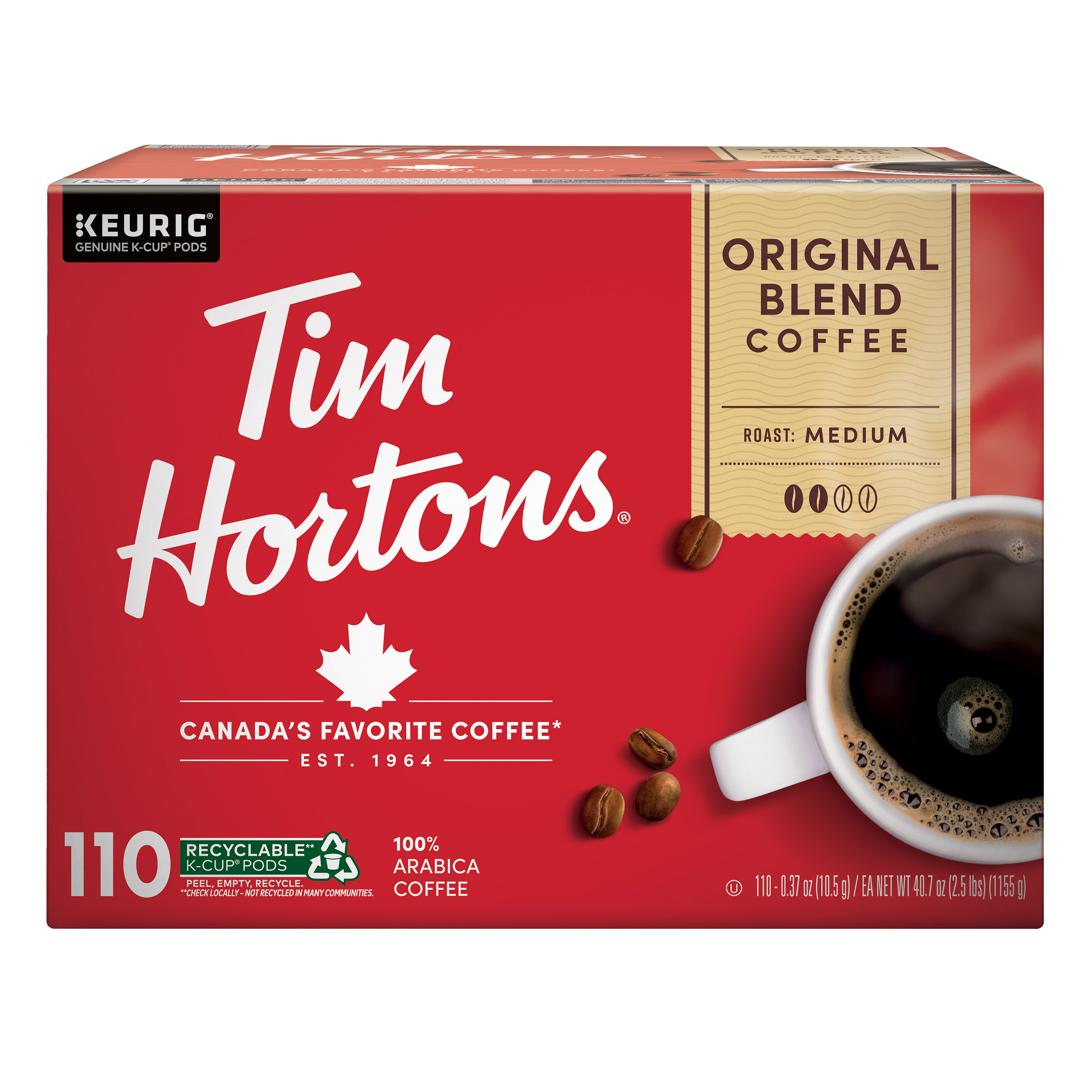 Tim Hortons Coffee Original Blend K-Cup Pod, 110-count