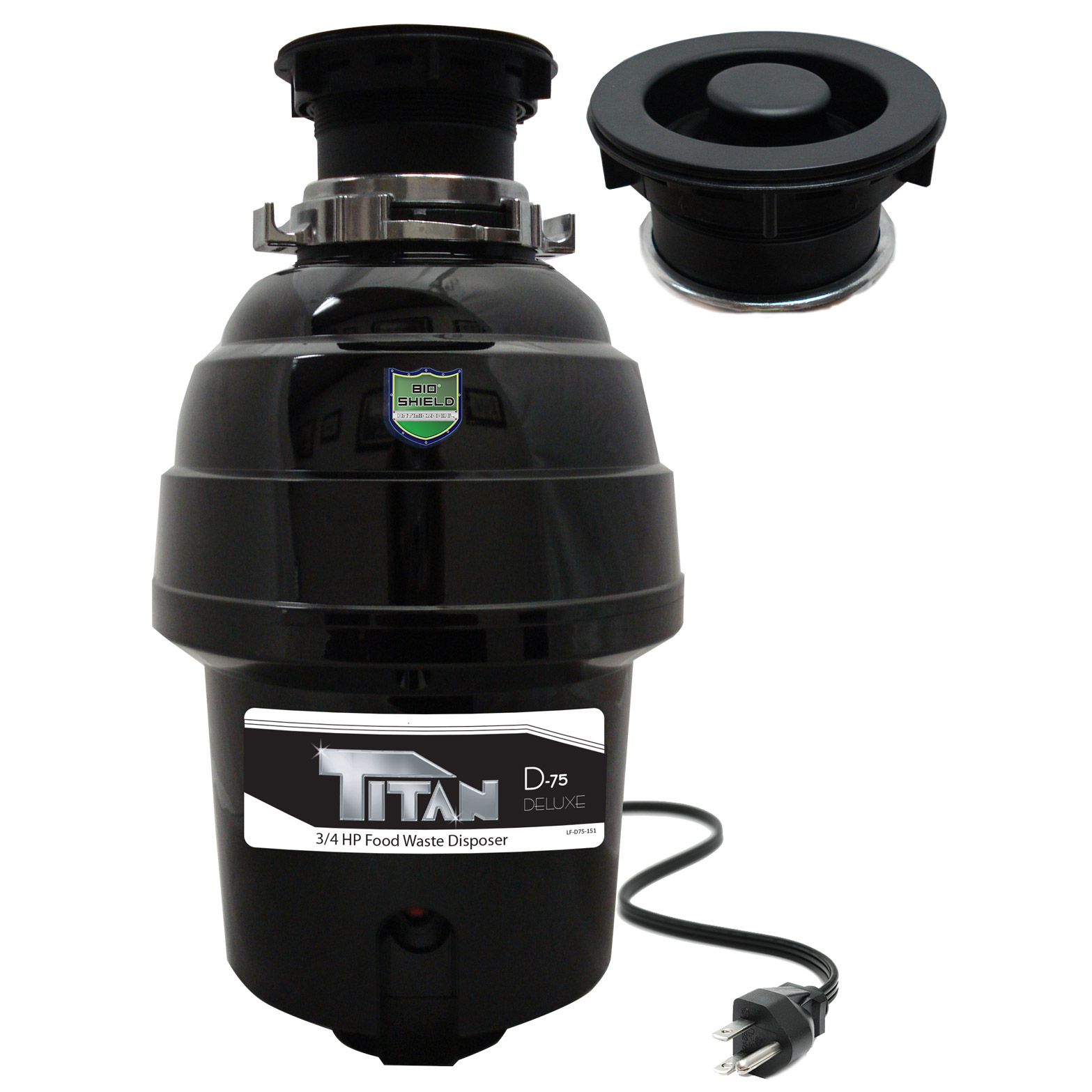 The Titan Designer Series D-75 Food Waste Disposer is now available in a Designer Finish sink flange to include Black, Brush Nickel, Polished Chrome, Oil Rubbed Bronze and White. With the Titan Designer D-75 Food Waste Disposer, you can replace that old, smelly, noisy disposer with the newest in disposer technology. Your Titan Designer D-75 Food Waste Disposer is the only Disposer that is treated with Bio-Shield®, an antimicrobial agent molded inside providing protection against odor caused by bacterial growth. Your Titan Designer D-75 Food Waste Disposer can handle most types of food waste including coffee grounds, the toughest vegetable scraps, peelings and small bones. The Titan Designer D-75 Food Waste Disposer is the key to convenience and a healthy home environment. Cooking is easier and faster because you do not make trips back and forth to an outside garbage container. Cleanup after meals is fast and easy. Reduce unpleasant odors by instantly disposing of food waste and reduce insect and rodent infestation by instantly removing food waste. Meal preparation and cleanup are easier than ever. Simply turn on the water, power on disposer, and scrape messy food waste into your disposer. It’s that simple! Scraps are ground into very fine particles and sent down the drain…and it is safe to use with septic tanks too. No more odors, vermin-attracting mess or unsanitary conditions which means a cleaner, healthier life.