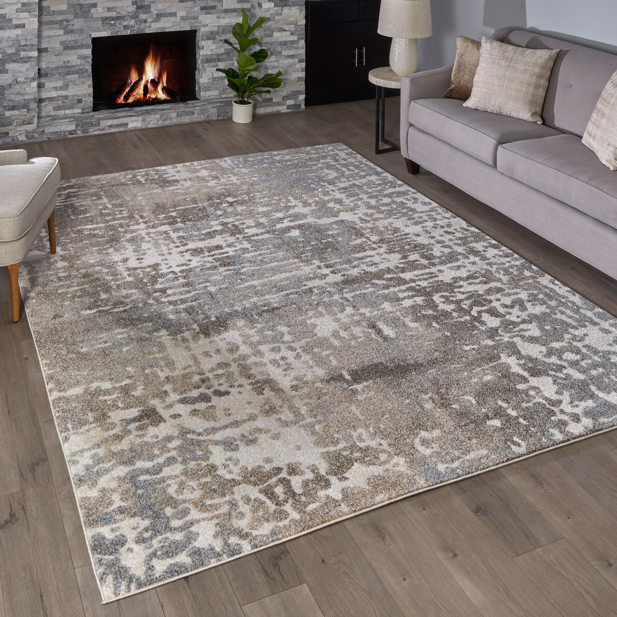 The Tornio Sorrento Beige Area Rug by Gertmenian is a subtle abstract design intermingling colors of ivory, grays, beiges, and browns, which appear in light tones in some places and darken to medium tones elsewhere.    Construction: