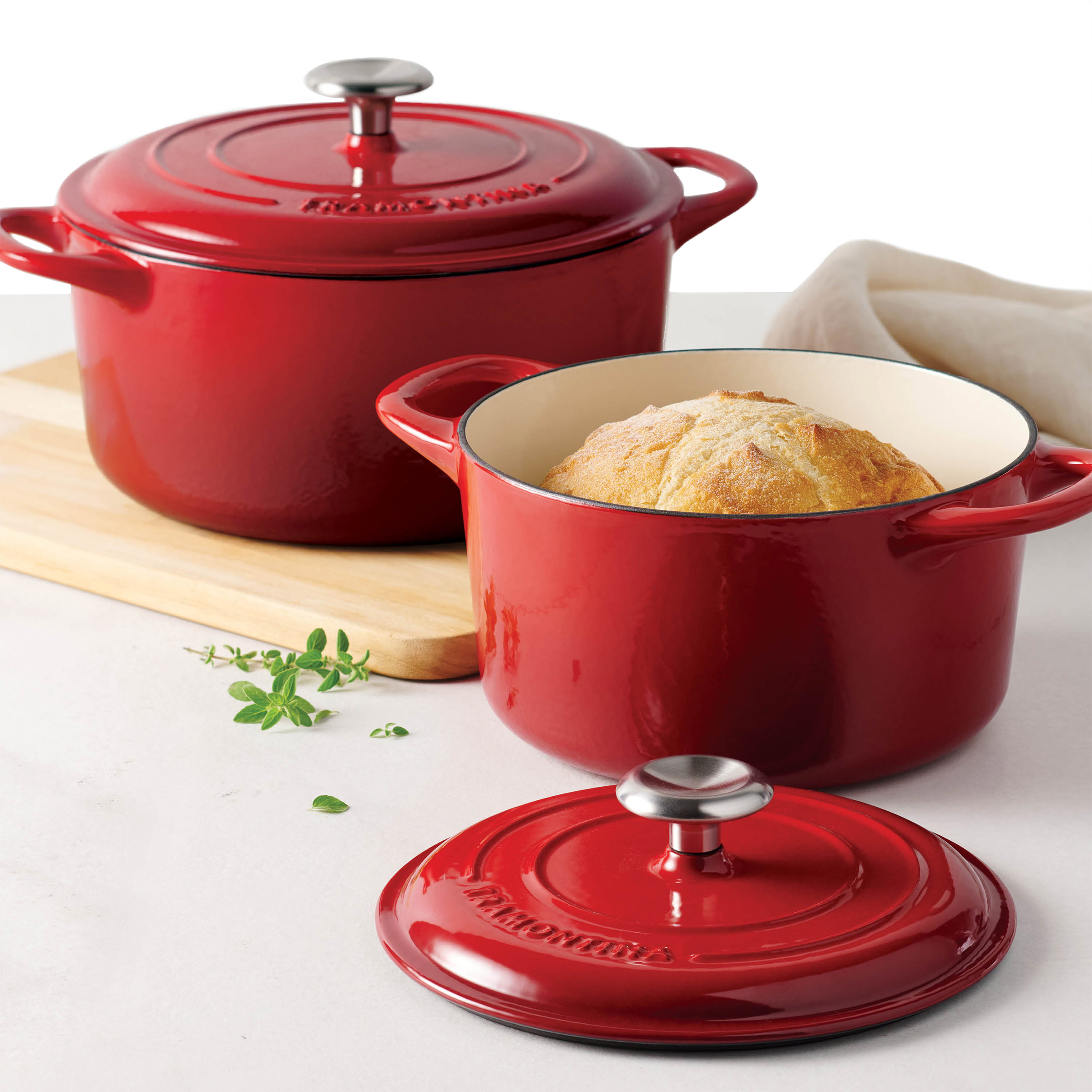 Tramontina’s 3.5Qt. & 5.5Qt. Round Cast Iron Dutch Oven Set is perfect for experienced chefs, home cooks, and busy parents. These dutch ovens are great for slow-simmered casseroles, hearty soups, stews, side dishes, tender roasts, braised ribs, breads, cobblers, puddings—the list is endless. Your guests will love the mouth-watering flavors enhanced by the pan's self-basting lid. Cooks will love everything else—from heat retention and even cooking, to a porcelain-enamel exterior finish that makes an easy kitchen-to-table serving option with sturdy side handles for easy handling.