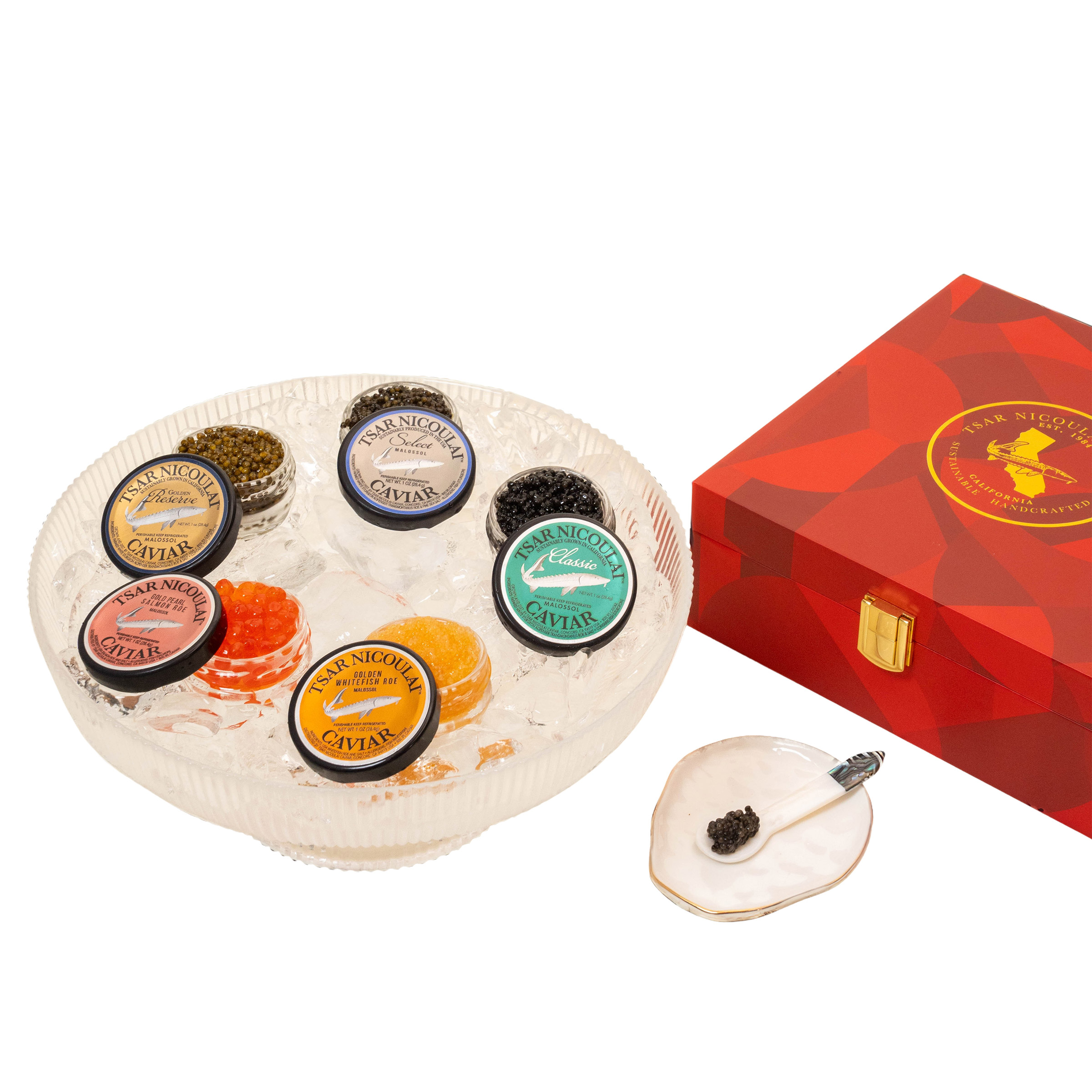 Tsar Nicoulai Mosaic Red Box 3 (1 oz.) Farmed Caviars and 2 (1 oz.) Wild American Roes