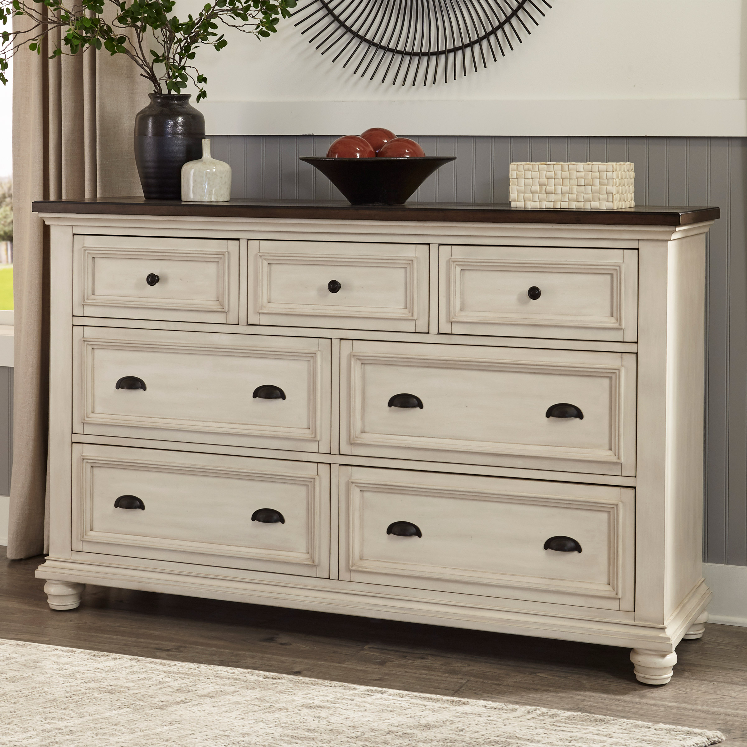 Pull together a truly stunning bedroom suite with the Viceroy dresser. The antique white and rustic brown finish lends a traditional feel and is accentuated with contemporary-inspired oil rubbed bronze hardware to add modern flair. Seven large drawers provide plenty of space to organize and store your clothing, linens, and more. Quality crafted with durable materials for many years of use and enjoyment.