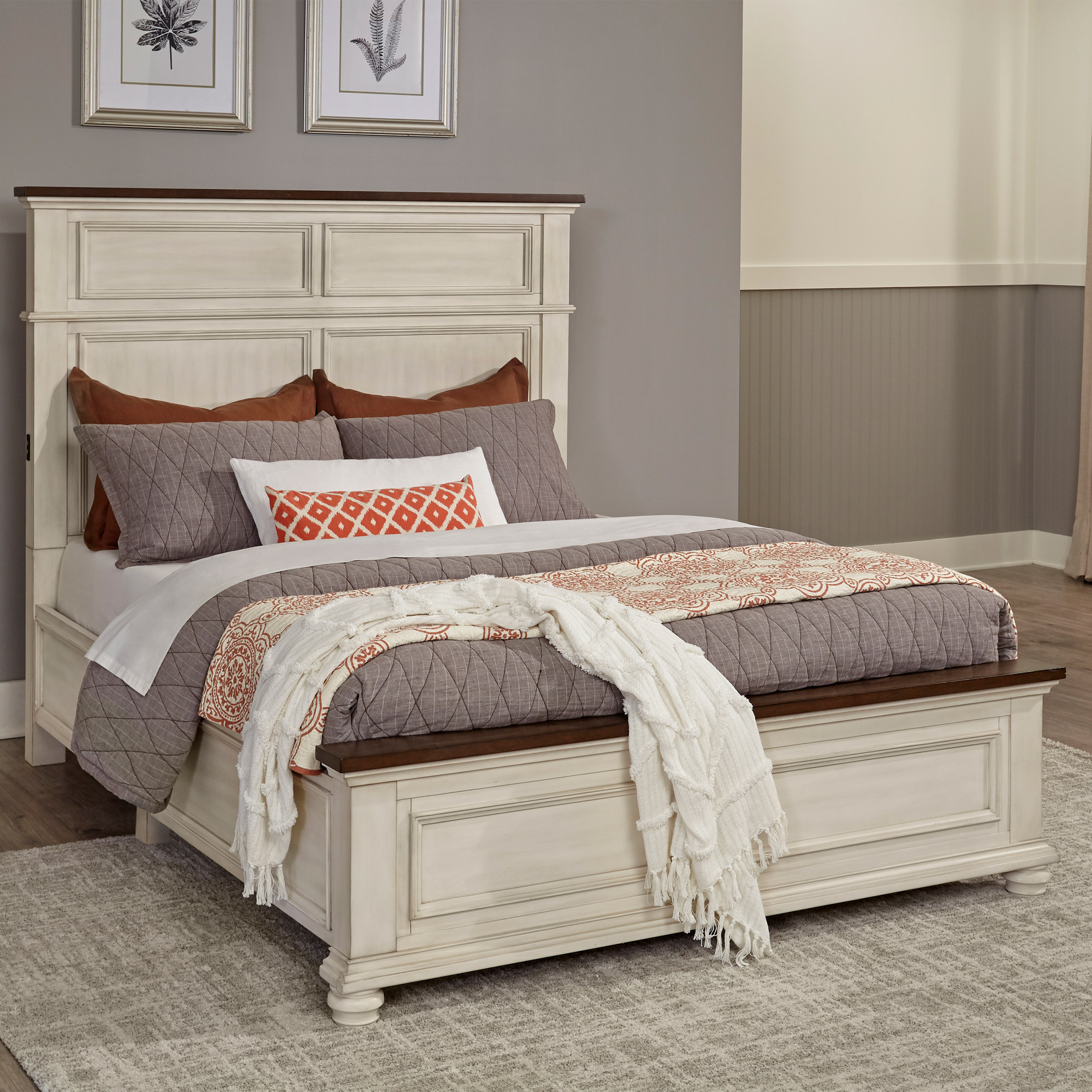 Rest and refresh yourself in the lap of luxury with the Viceroy king bed. Features classic framing with a contemporary feel, an antique white and rustic brown finish, and luxurious design that will blend easily with any style or decor. Includes two discreet USB outlets on each side of the headboard for convenient charging access. Crafted with care and quality durable materials for many years of peaceful slumber.