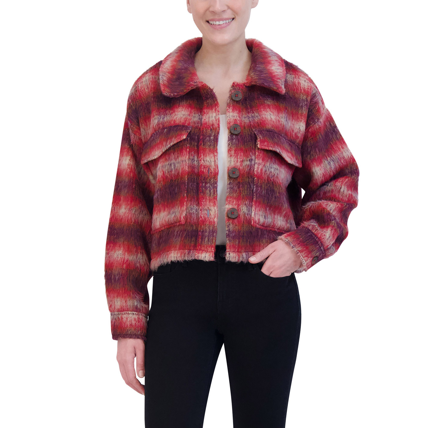 Vigoss Ladies' Brushed Plaid Crop Jacket