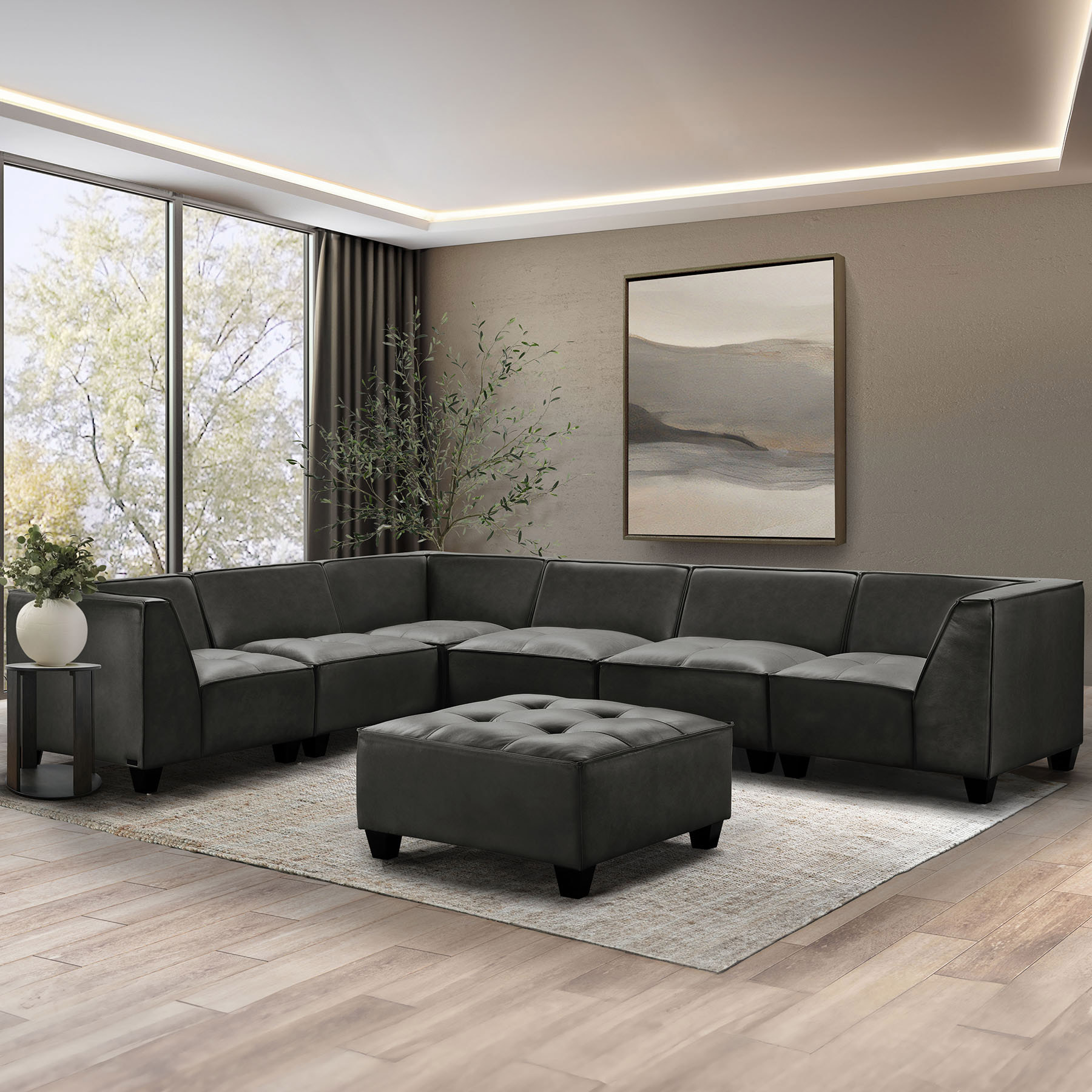 Wallingford 7-piece Leather Modular Sectional with Ottoman