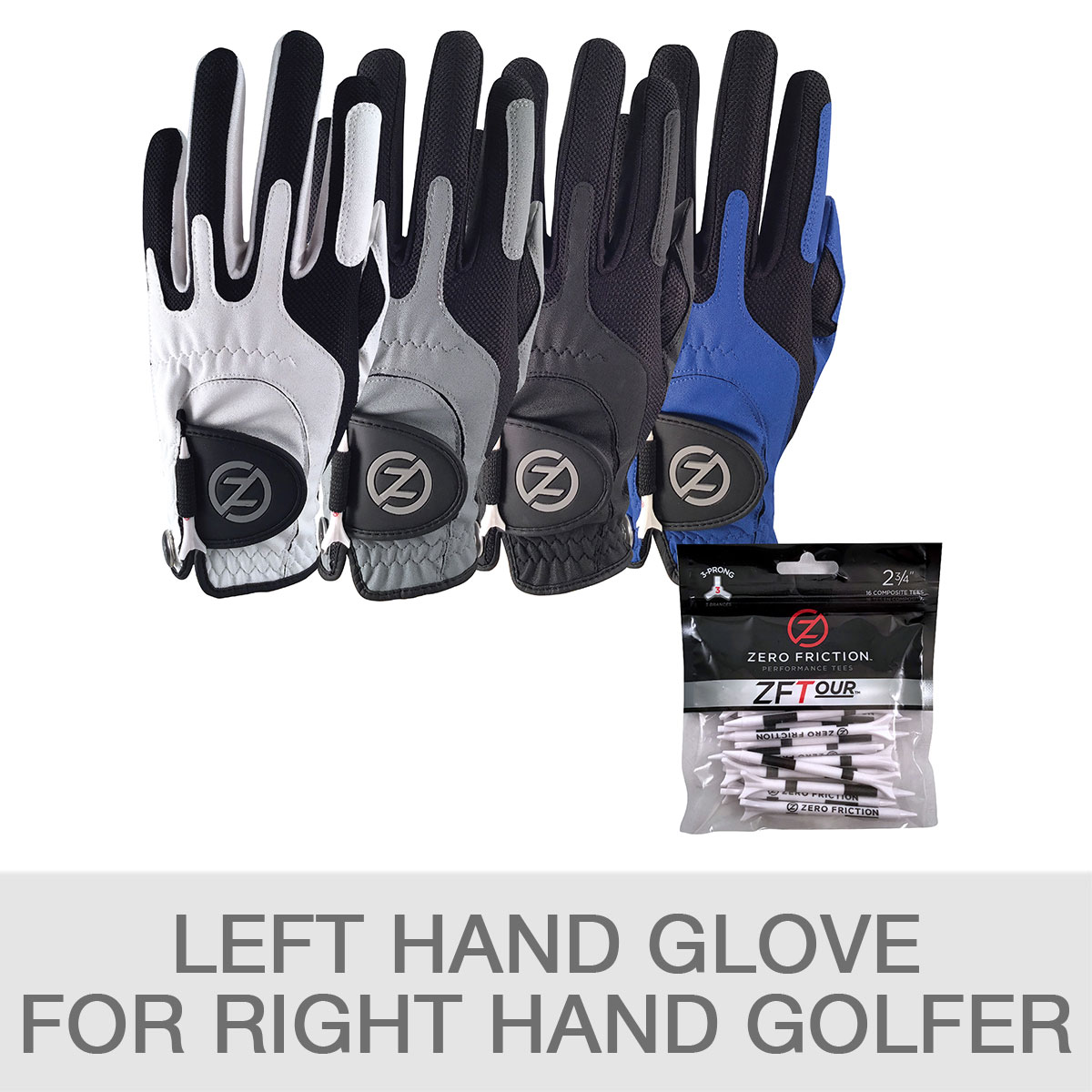 Zero Friction’s performance gloves take the guesswork out of finding the perfect size. Unlike any other golf glove, Zero Friction uses its patented compression-fit technology to deliver outstanding precision, flexibility and comfort to every golfer that puts one on. Our ZF Tour tee features 3-prong design for less surface coverage between ball and tee Includes: